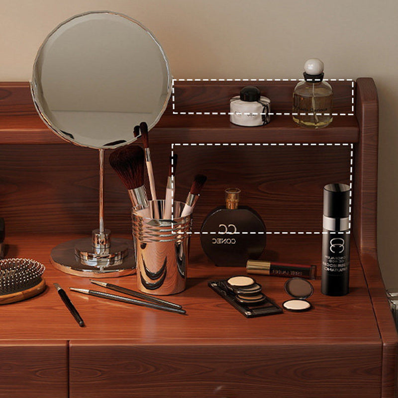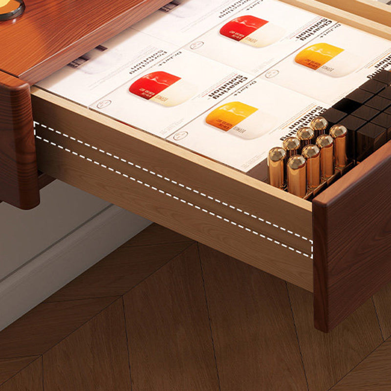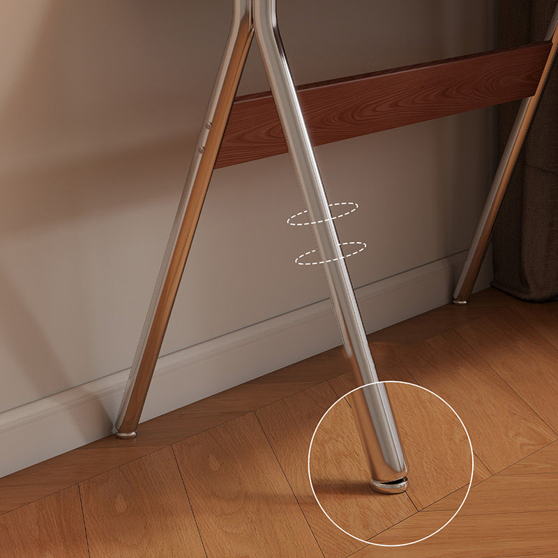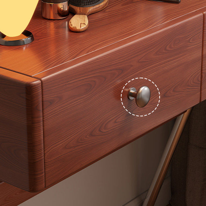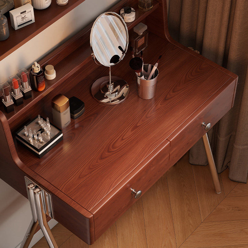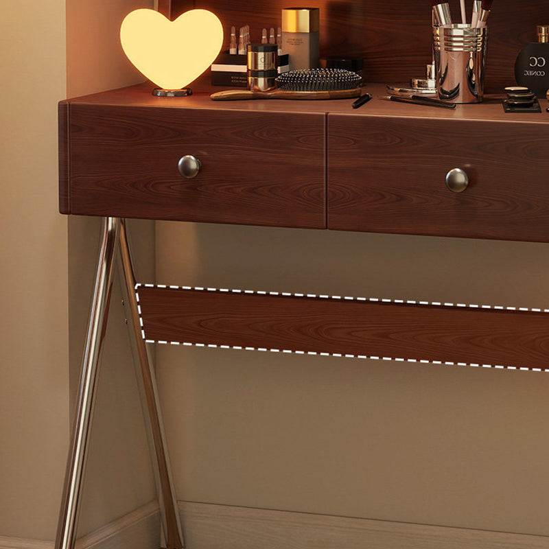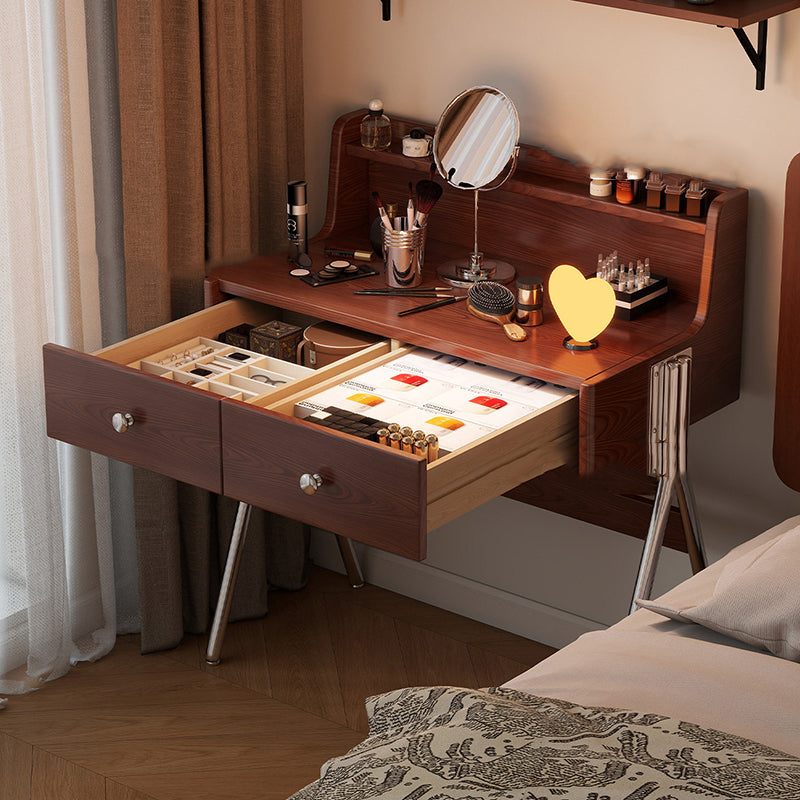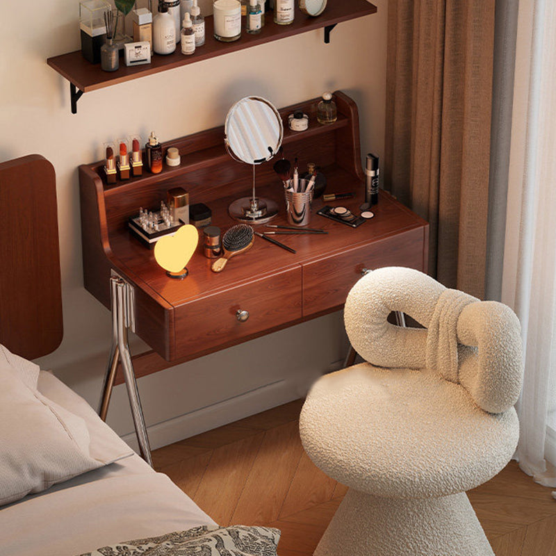 Add style and functionality to your bedroom with this retro contemporary vanity. Made from solid rubberwood with a natural grain finish, it features two roomy drawers for convenient storage and sturdy polished stainless steel legs for long-lasting stability. Its compact rectangular design fits perfectly in small or modern bedrooms.