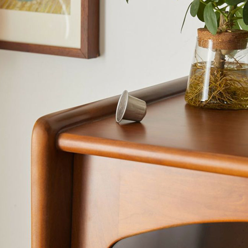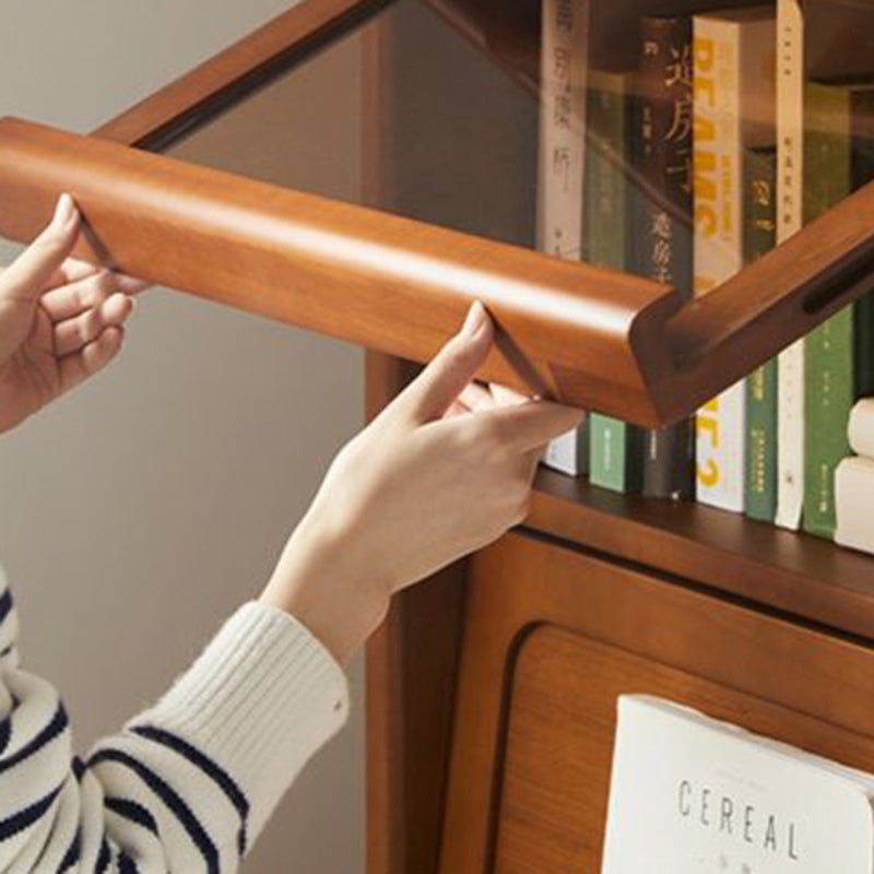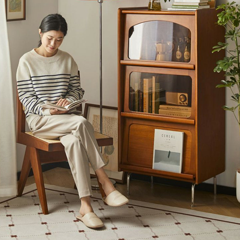 Contemporary Retro Square Tempered Glass Stainless Steel Solid Wood Storage Cabinet 3-Storage For Living Room