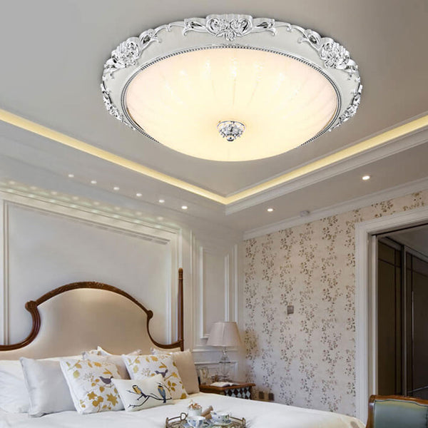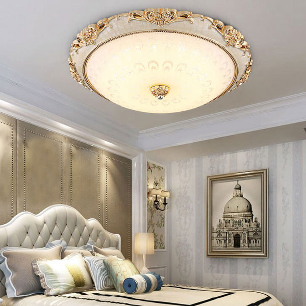 European Retro Round Floral Design LED Flush Mount Ceiling Light