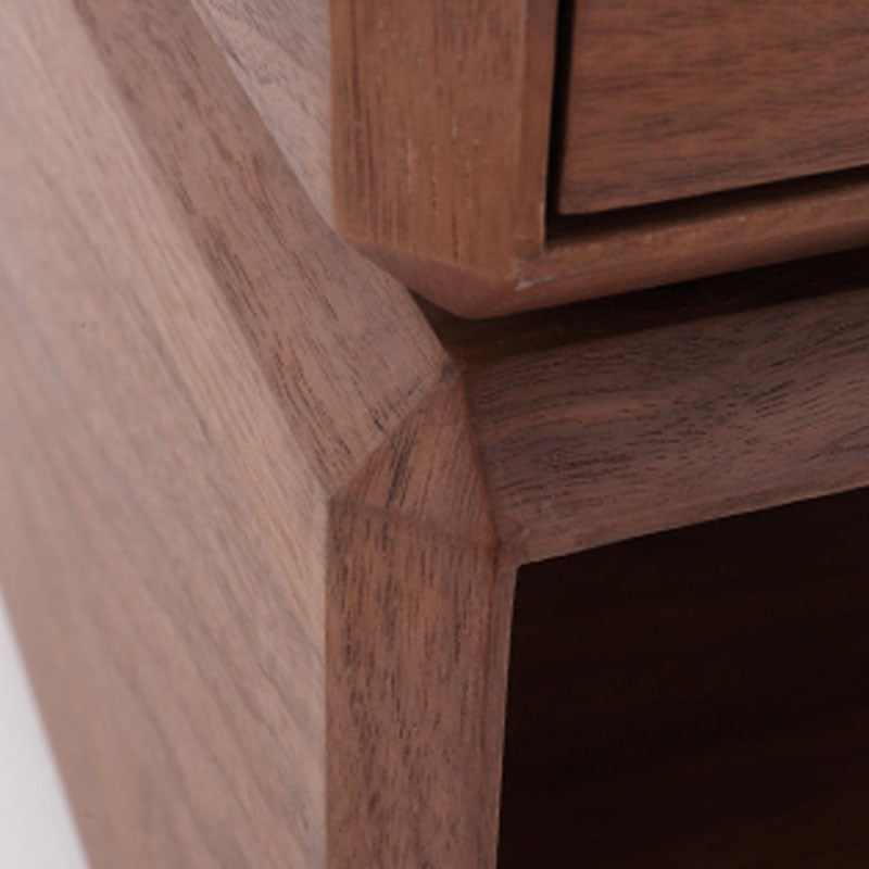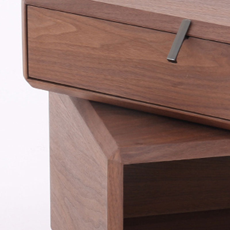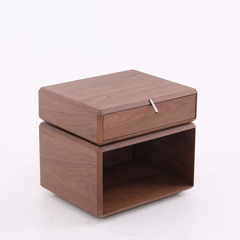 The warm texture of retro design style resides in this nightstand. The wood veneer cabinet top boasts natural grain, exuding ancient elegance, and it can rotate flexibly, adding convenience when accessing items. The cabinet is crafted from high-quality solid wood multi-layer board --- a sturdy material that balances durability and eco-friendliness, free from harmful pollution, ideal for a healthy retro living space. The wood veneer drawer features smooth tracks, sliding without any jamming; paired with the open storage cabinet below, daily bedside items can be neatly organized in separate zones. The grey titanium hardware handle adorns it, showcasing elegant texture in simple lines, enhancing the refinement of the retro style. Place it by the bed, and every open-close movement hides the elegance of old times and the practicality of modern daily life.
