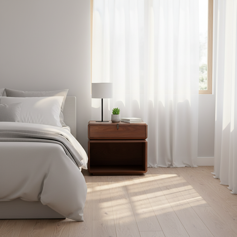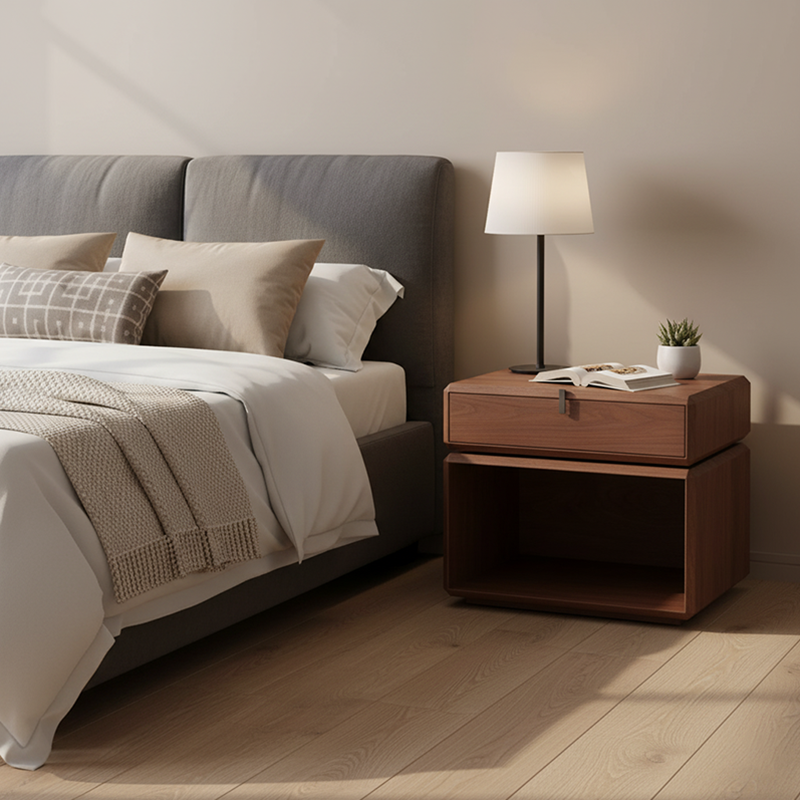 - Storage Layout: Open cabinet + drawer, classified storage for daily bedside items.