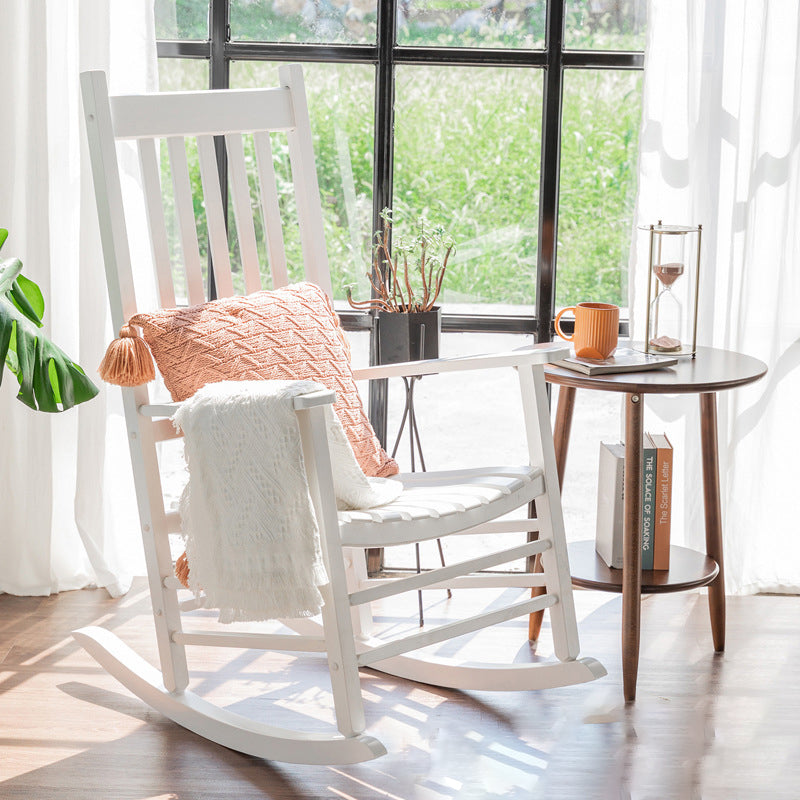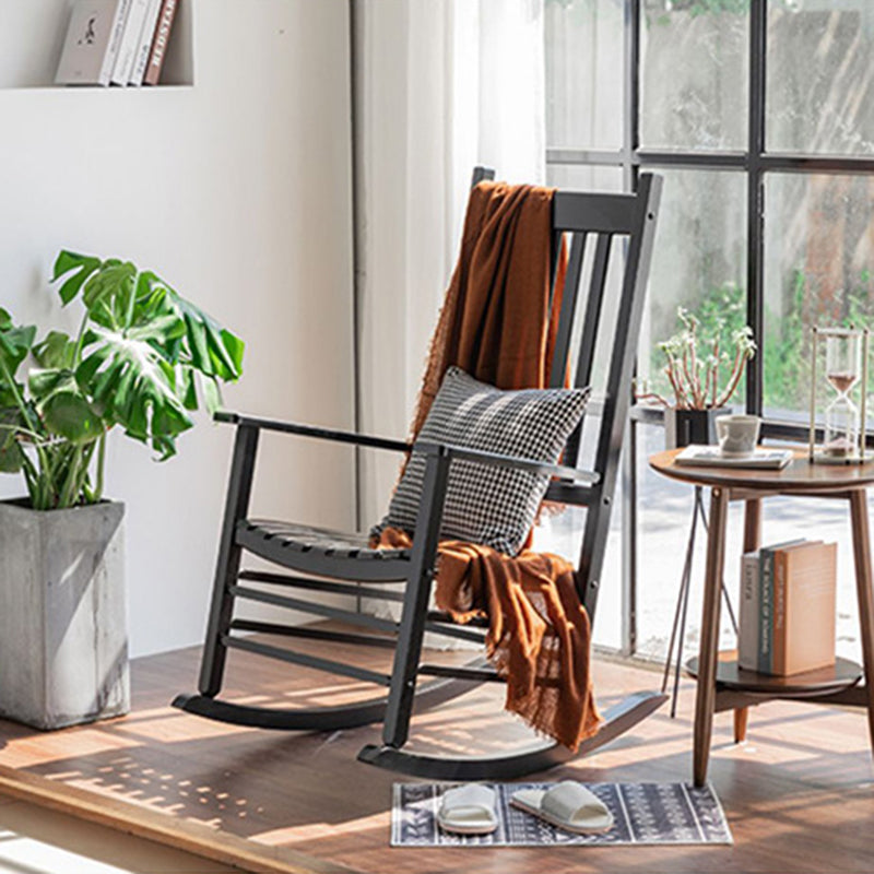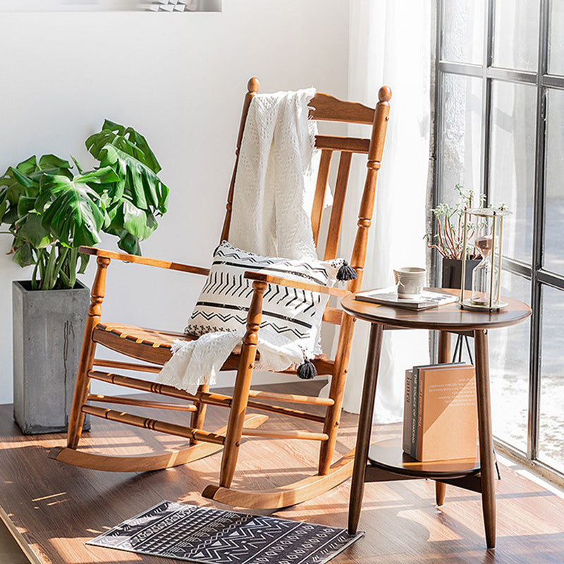 Modern Minimalist Curved Poplar Wood Rocking Chair Backrest Armrest For Living Room