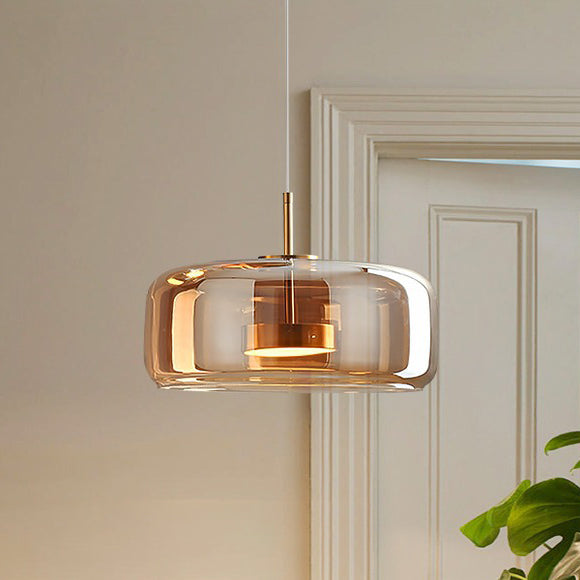 Contemporary Scandinavian Cylinder Copper Glass LED Pendant Light For Living Room
