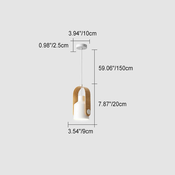 Contemporary Scandinavian Cylindrical Wooden Iron 1-Light Pendant Light For Bedroom