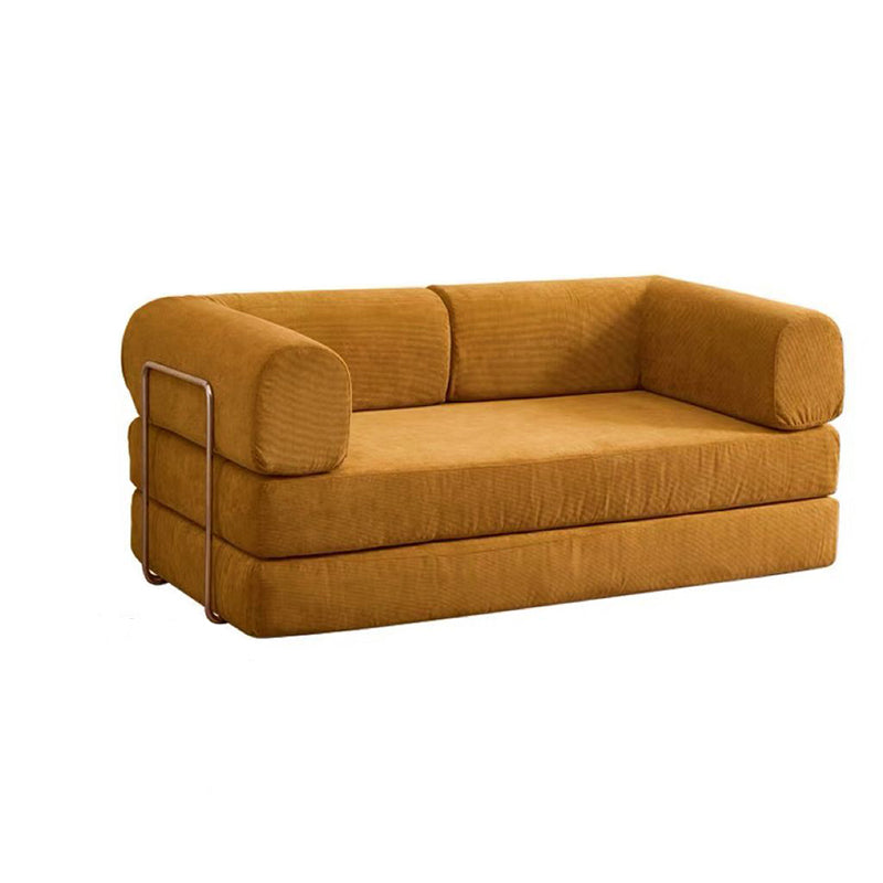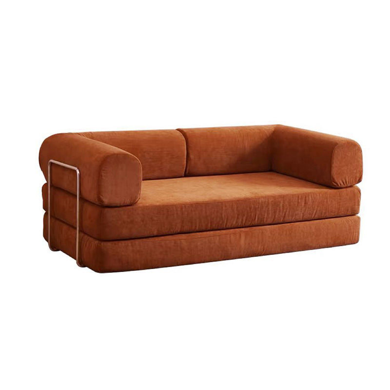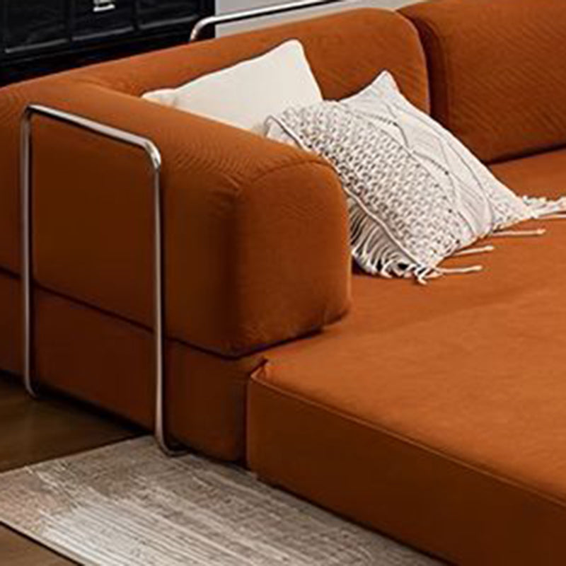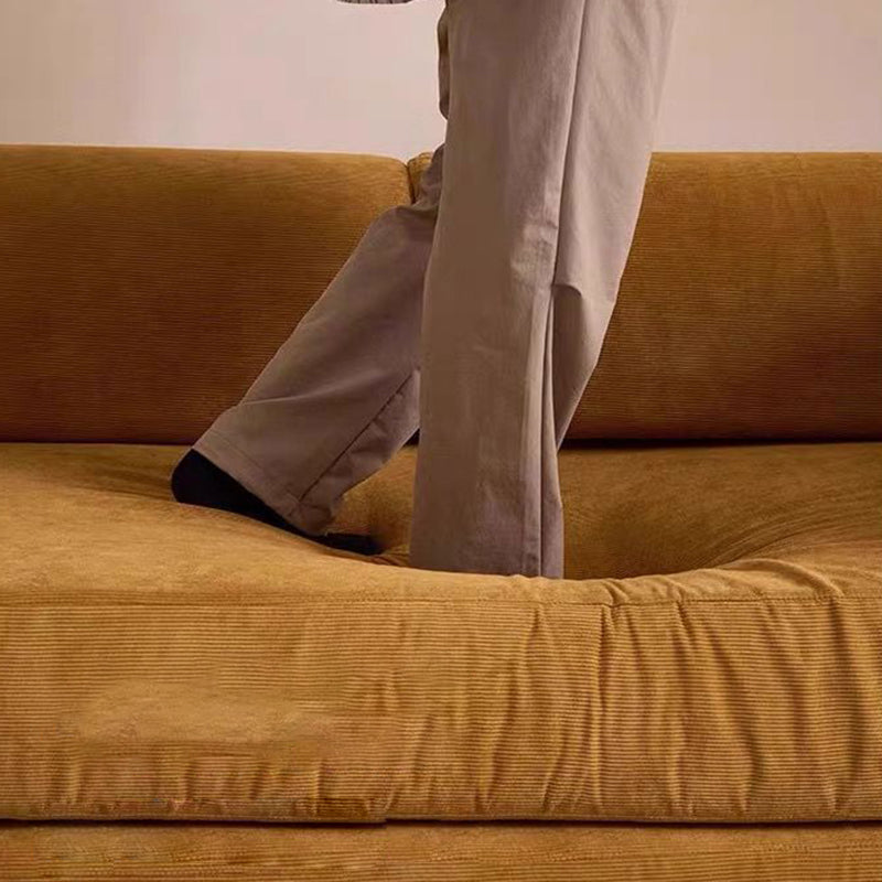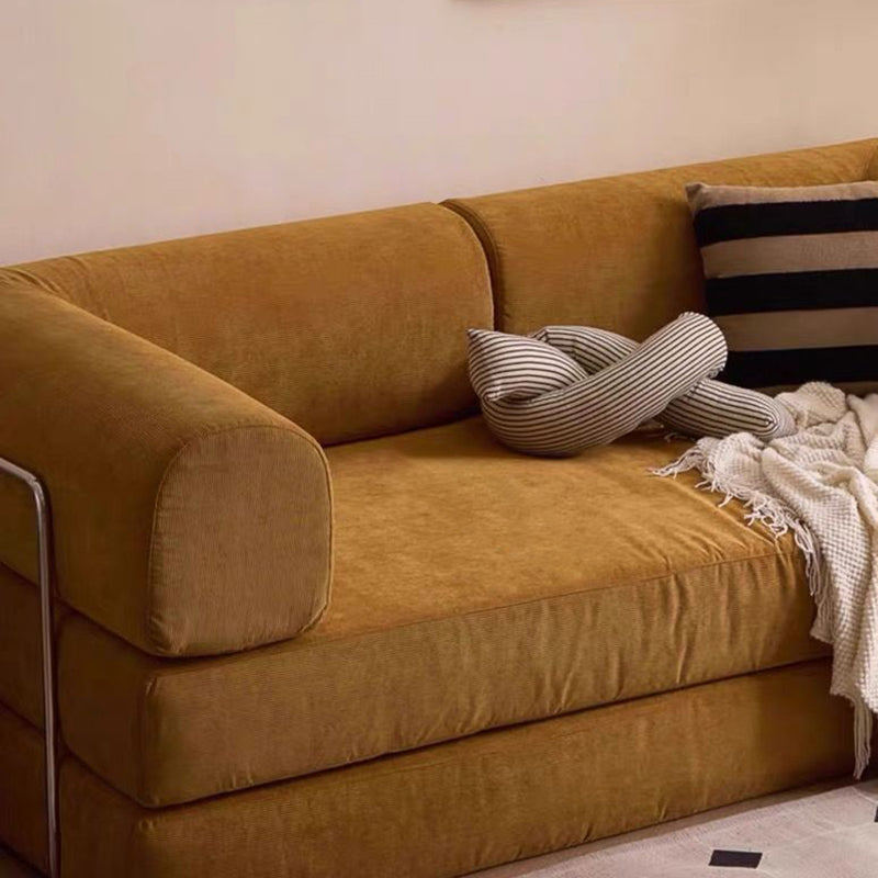 Modern Minimalist Stainless Steel Fabric Corduroy Curved Square Sofa With Backrest & Armrests For Living Room