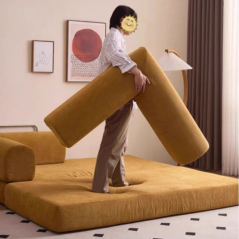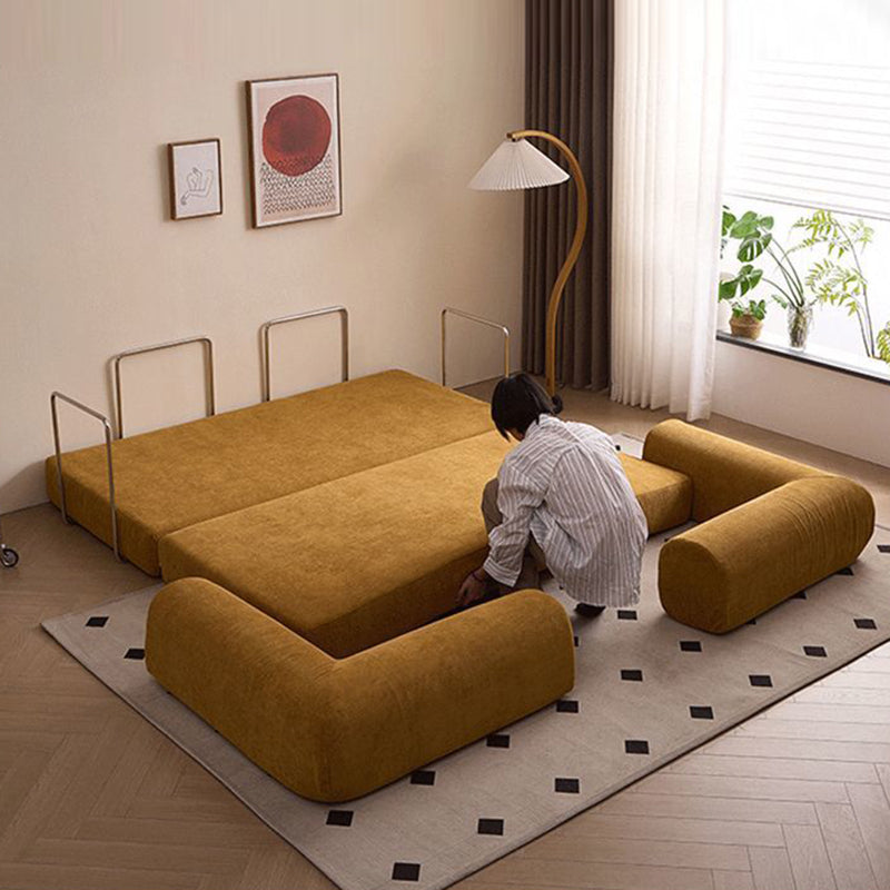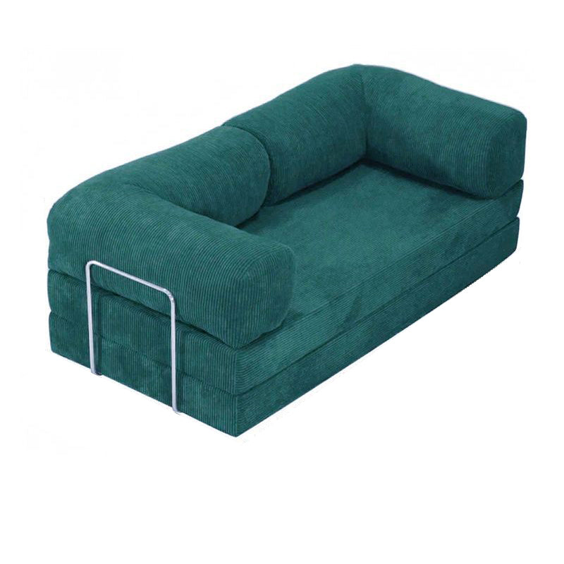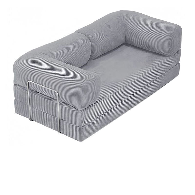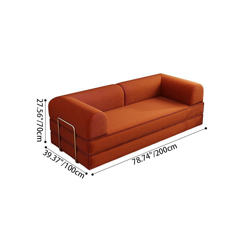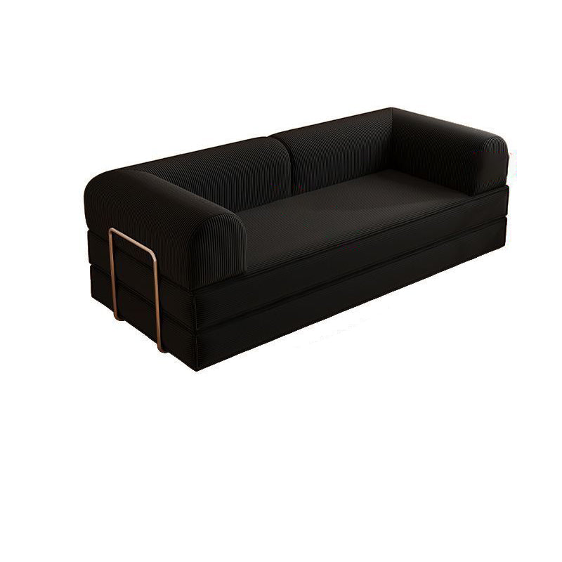 Modern Minimalist Stainless Steel Fabric Corduroy Curved Square Sofa With Backrest & Armrests For Living Room