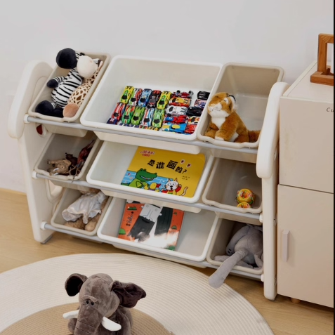 The practical rectangular organizer features innovative silicone anti-slip feet to prevent shifting on smooth floors, making it a safe addition to any living room or bedroom. The easy-access, open sorting system encourages children's independence in tidying up after play. Available in sophisticated khaki and crisp cream white, this piece blends seamlessly into modern home spaces while providing essential daily organization. Optimized for North American consumers searching for HDPE 3-tier toy storage, large capacity kids organizer, contemporary rectangular toy cabinets, and stable anti-slip children’s furniture.
