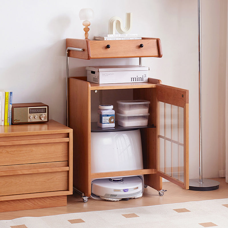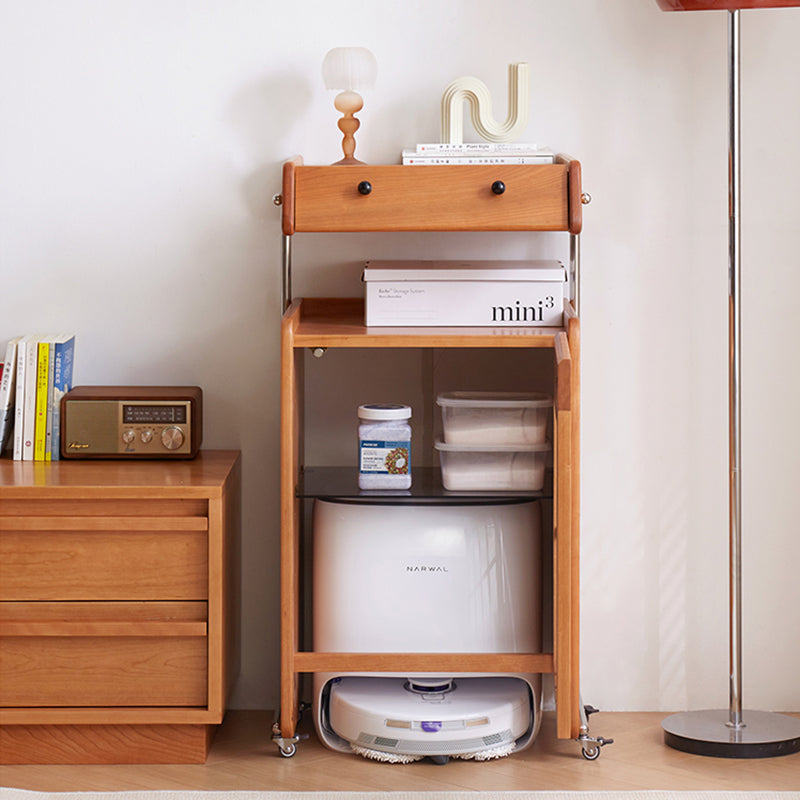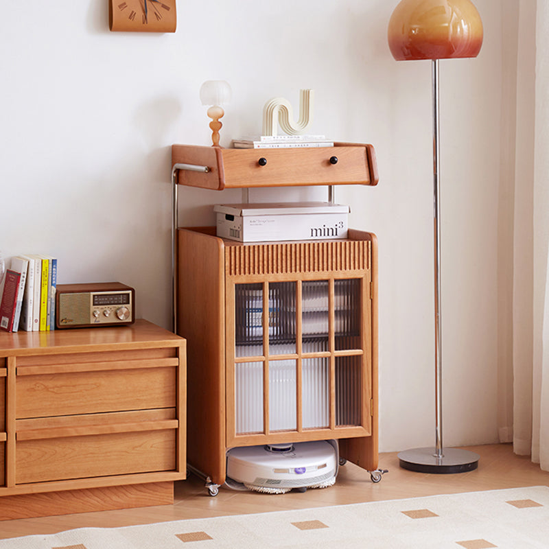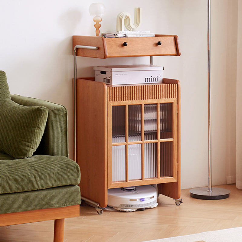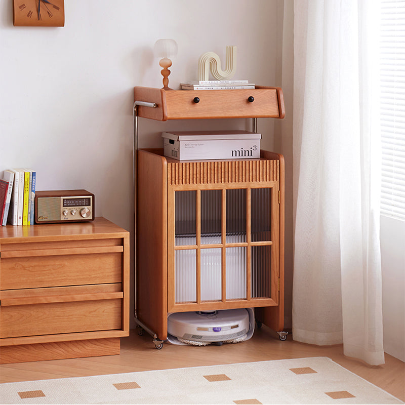 Crafted from solid cherry wood with a sturdy multi-layer wood back panel, this movable robot-shaped cabinet offers four tiers of spacious storage in a warm cherry finish. Designed to hold everyday items---and even fit a robot vacuum---it brings both personality and practical organization to living rooms and bedrooms.