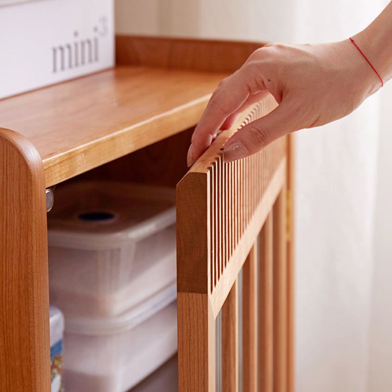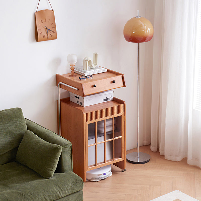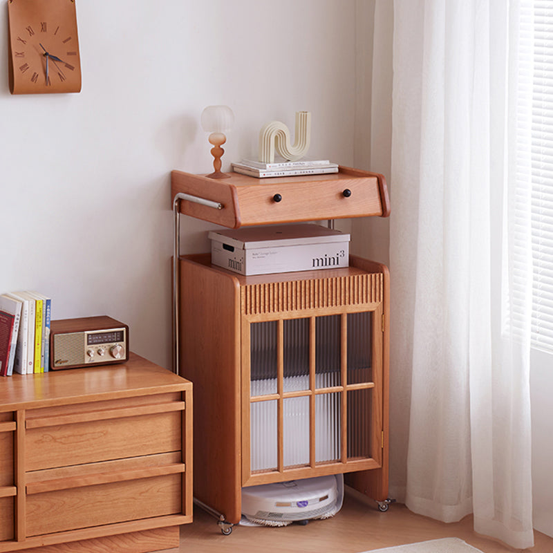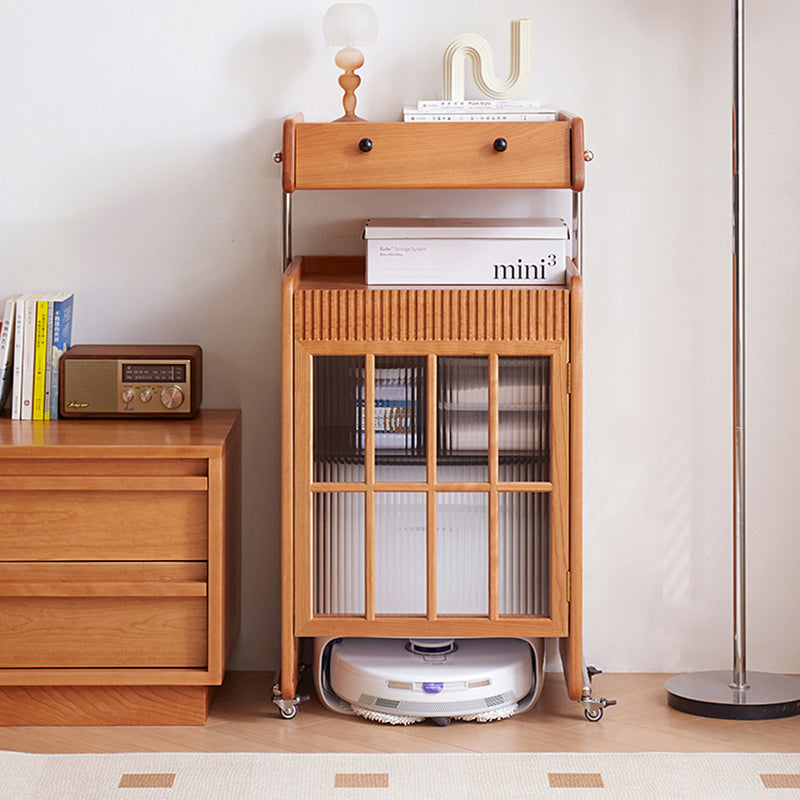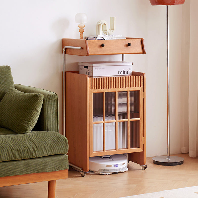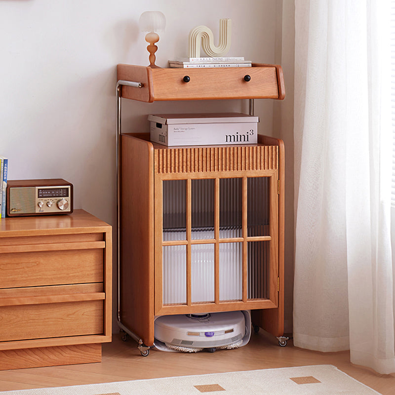 Crafted from solid cherry wood with a sturdy multi-layer wood back panel, this movable robot-shaped cabinet offers four tiers of spacious storage in a warm cherry finish. Designed to hold everyday items---and even fit a robot vacuum---it brings both personality and practical organization to living rooms and bedrooms.