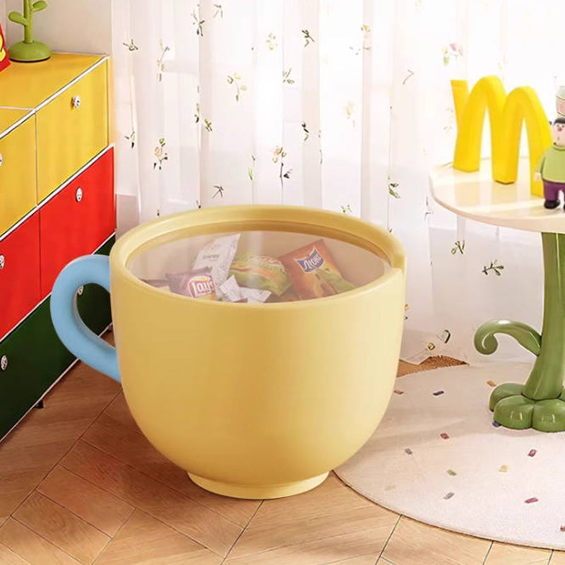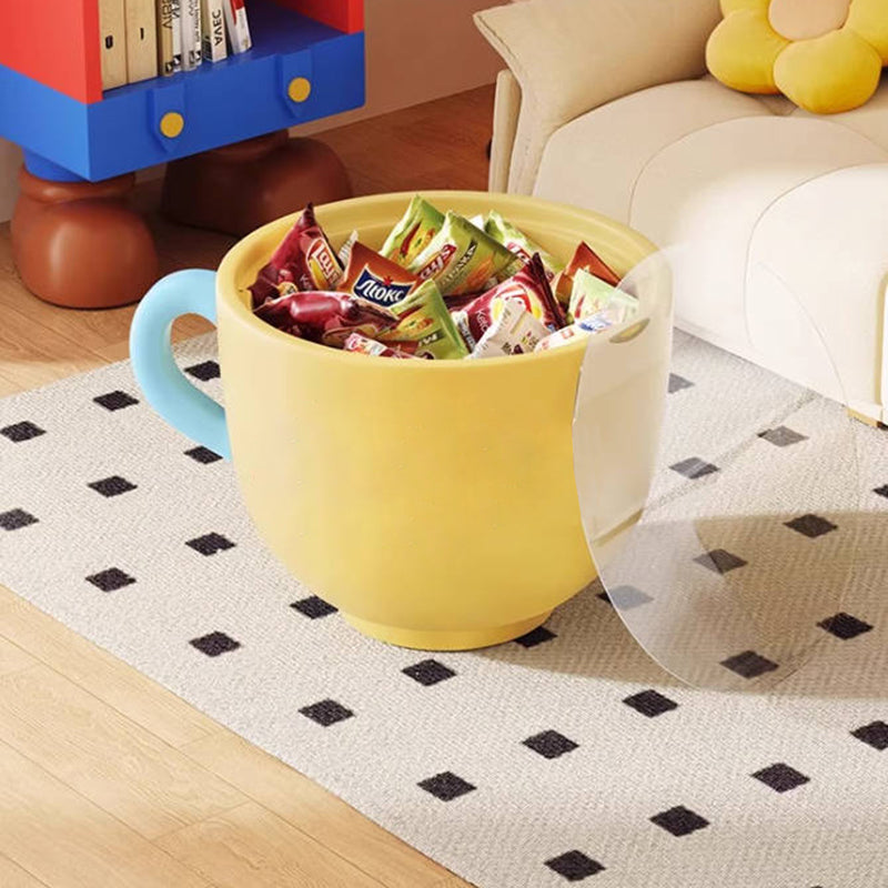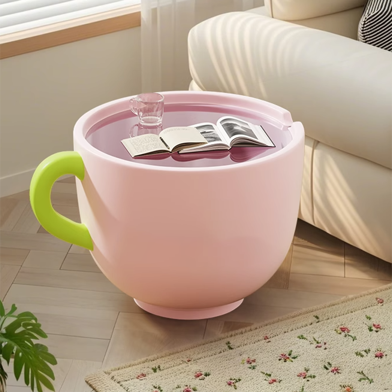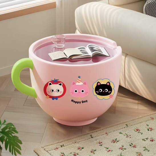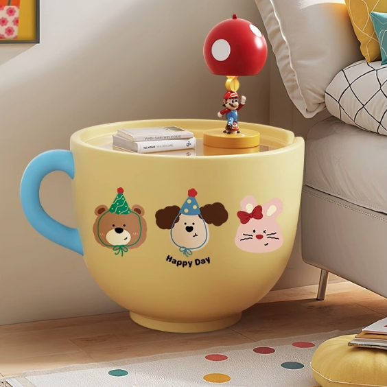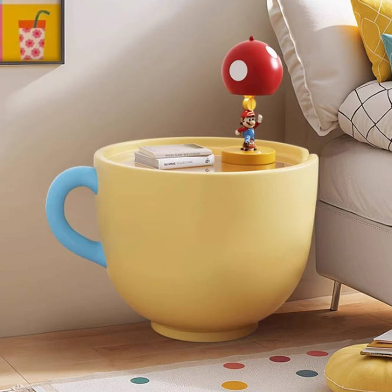 More than just a table, this piece functions as a practical storage solution, boasting a hidden large-capacity storage cabinet within the cup base, perfect for discreetly stowing away remotes, toys, or magazines. Available in vibrant Pink, sunny Yellow, and cheerful Red, this side table is a charming and practical snack and storage solution for modern living rooms, playrooms, and family spaces. Optimized for North American consumers searching for creative round side tables with storage, cup-shaped resin base furniture, cartoon print accent tables, and fun snack and storage solutions for children's and family areas.