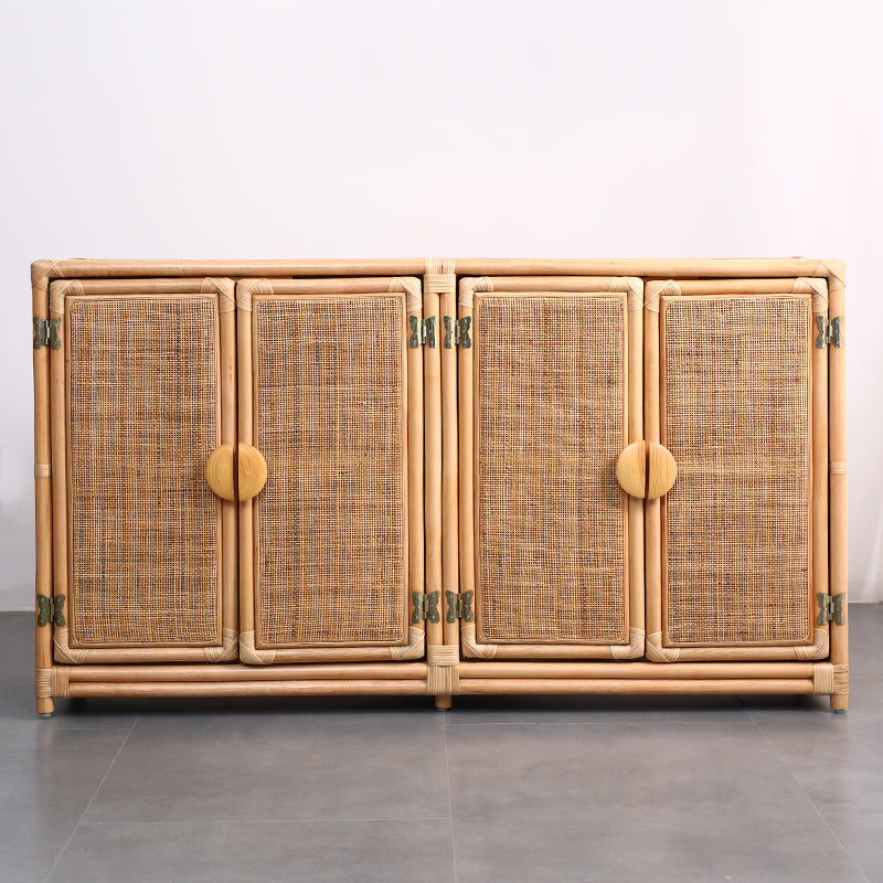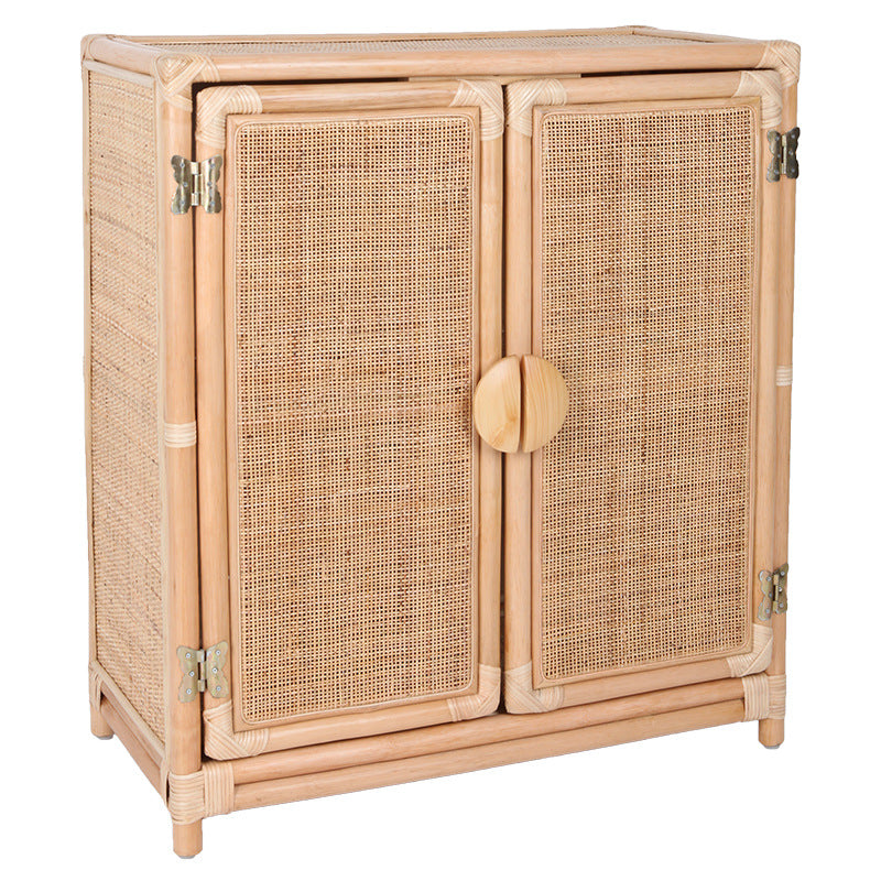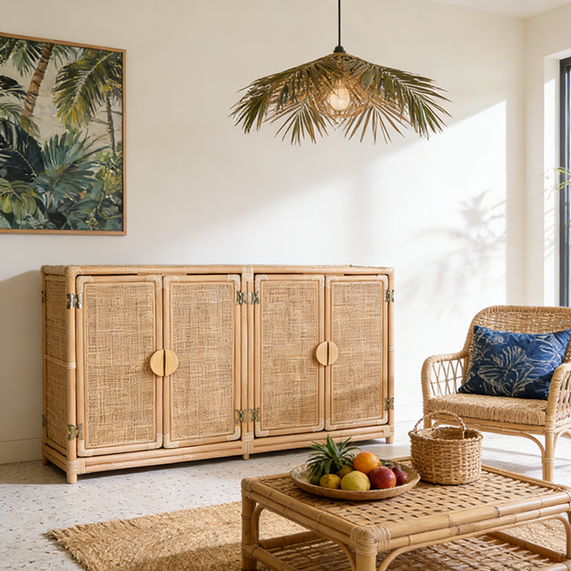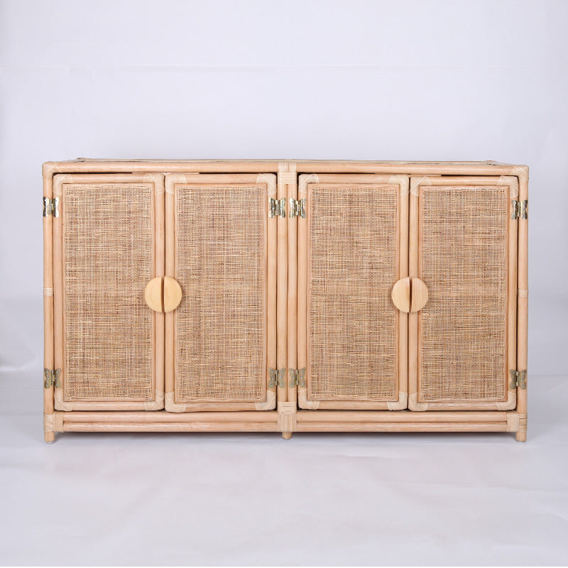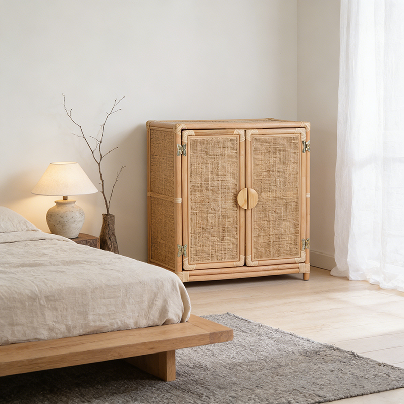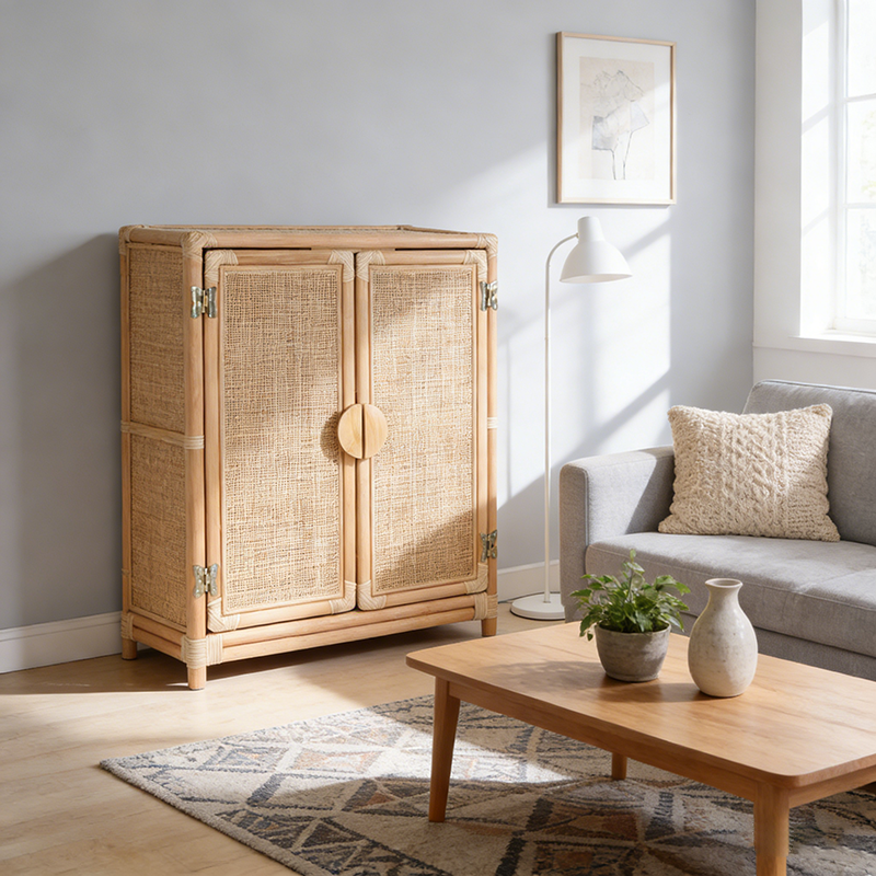 Breathable Woven Doors: Natural rattan weaving allows airflow to reduce moisture buildup, making it a practical outdoor rattan cabinet for cushions, towels, and patio essentials.