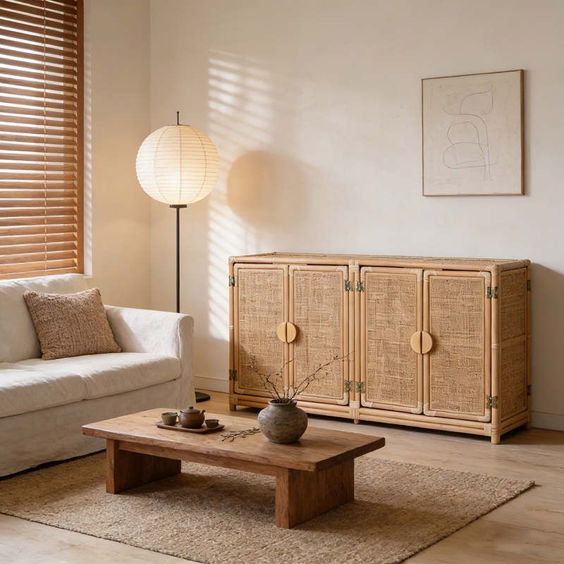 Low-Profile Horizontal Design: Clean, low-profile rectangular silhouette with balanced proportions, ideal as a rattan storage cabinet for patios, balconies, and indoor living spaces.
