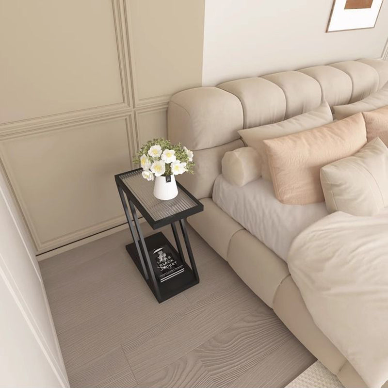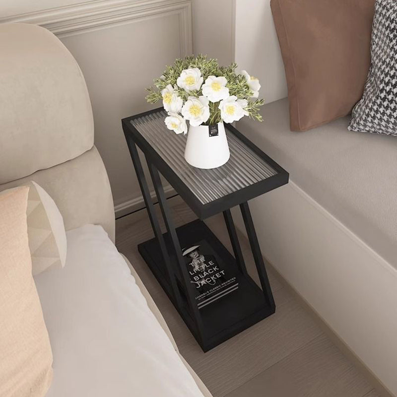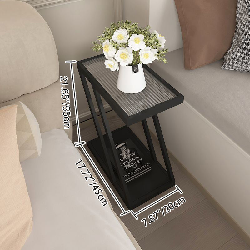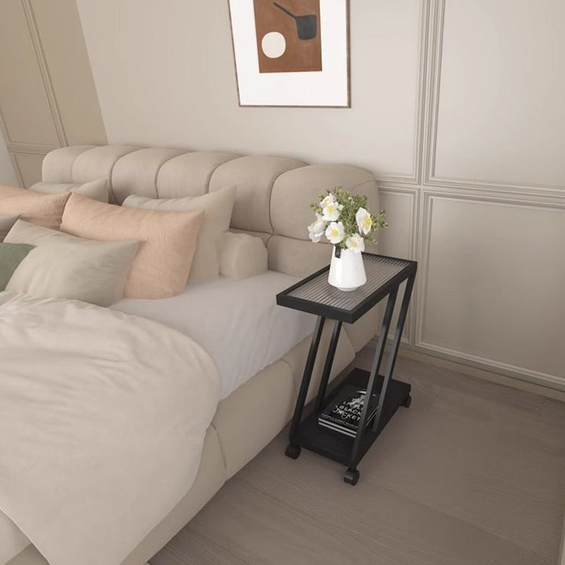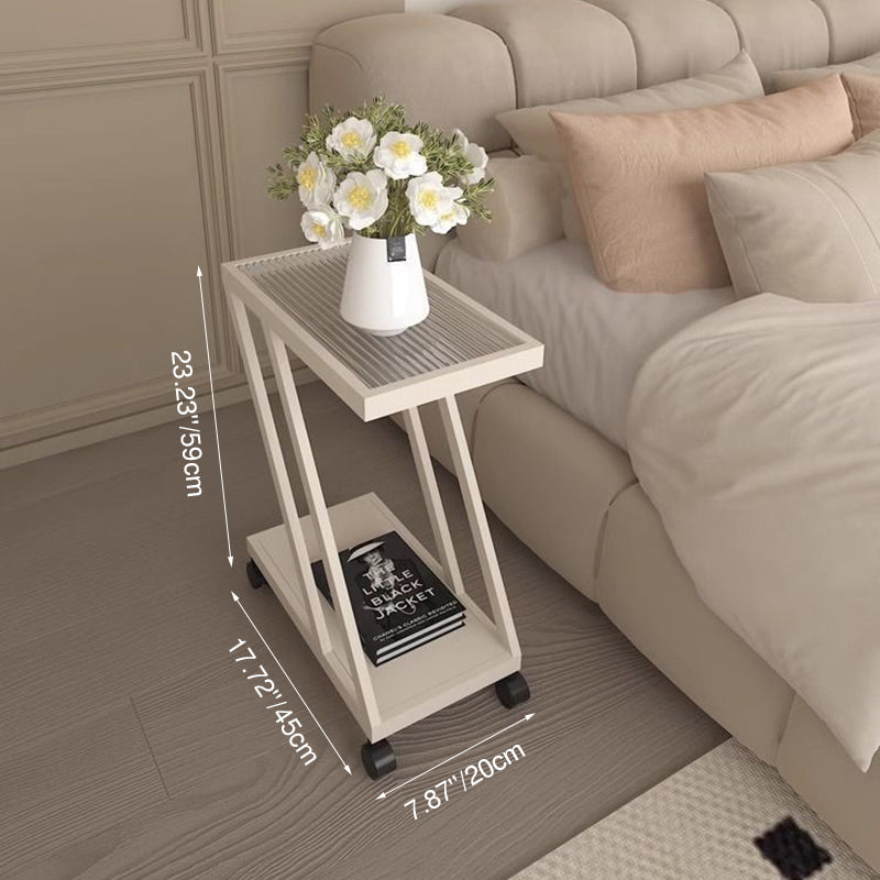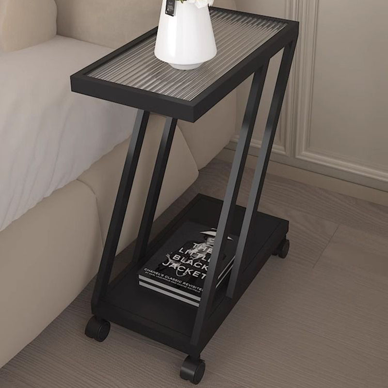 Modern Minimalist Rectangular Glass Iron Movable Side Table 2-Tier For Living Room