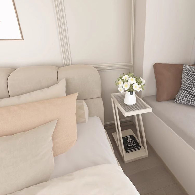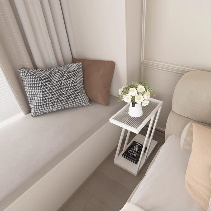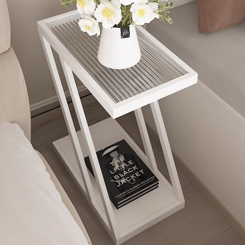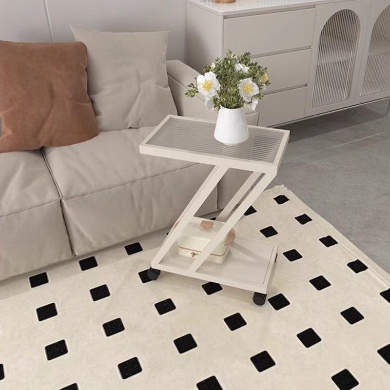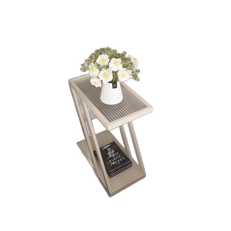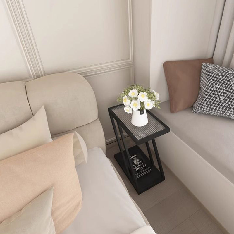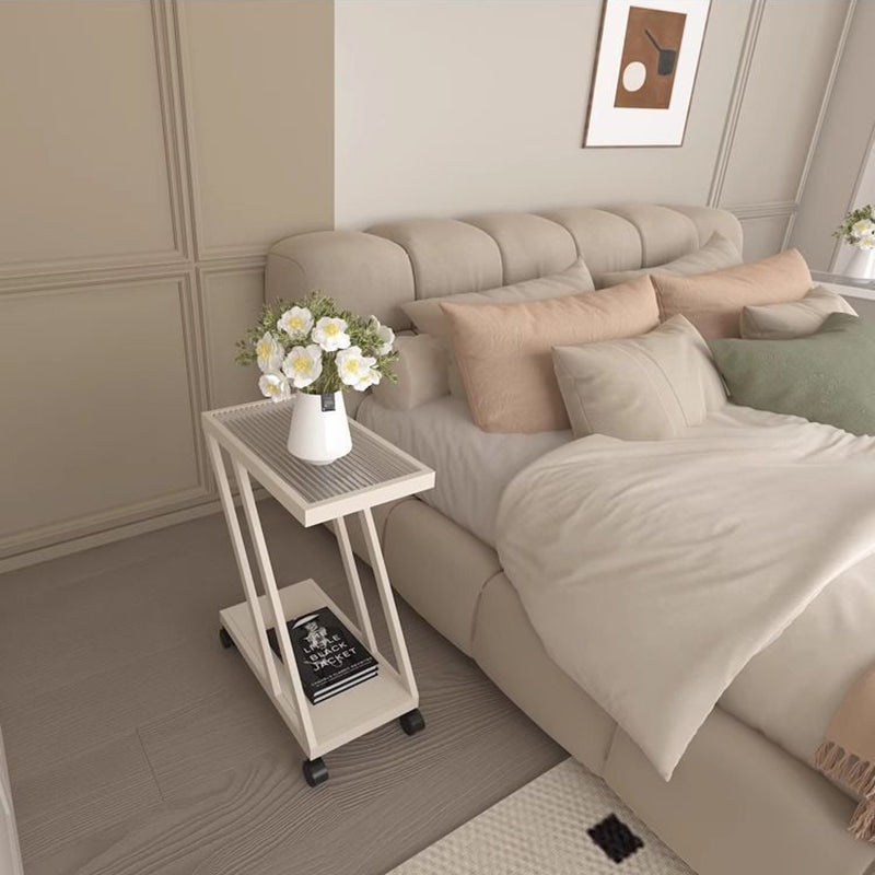Modern Minimalist Rectangular Glass Iron Movable Side Table 2-Tier For Living Room
