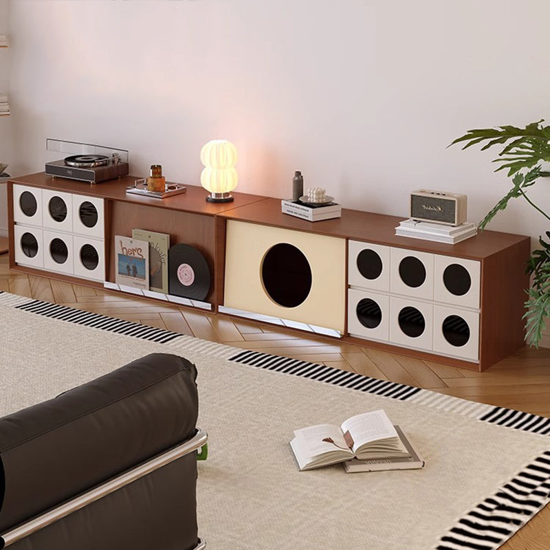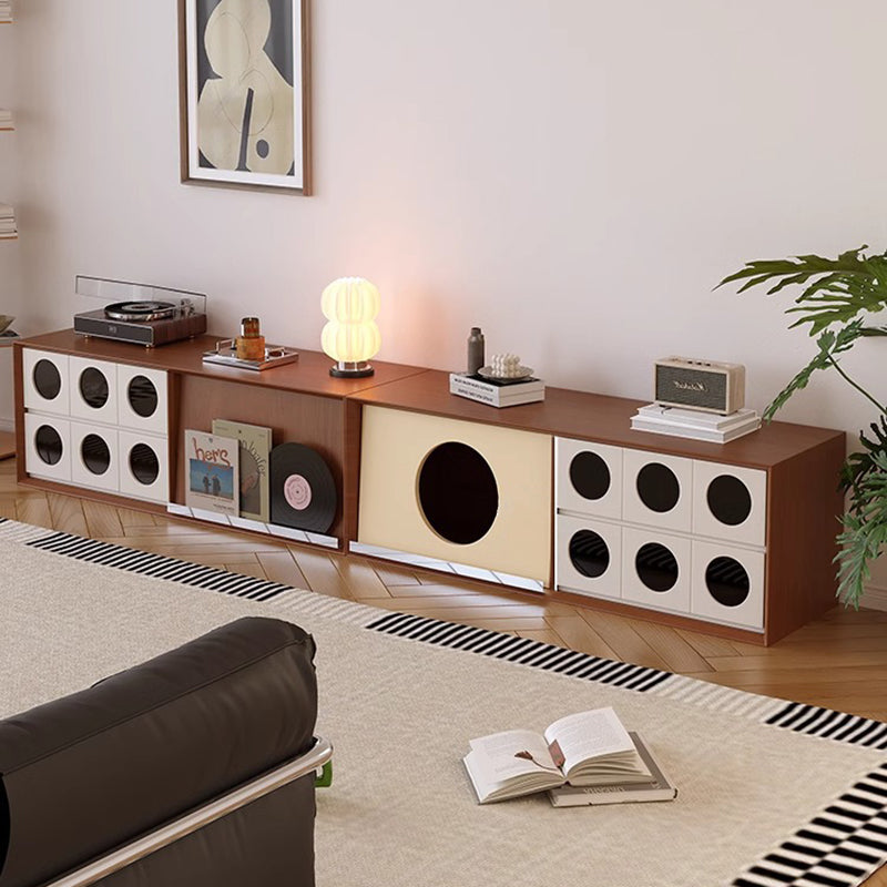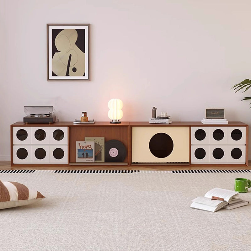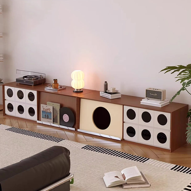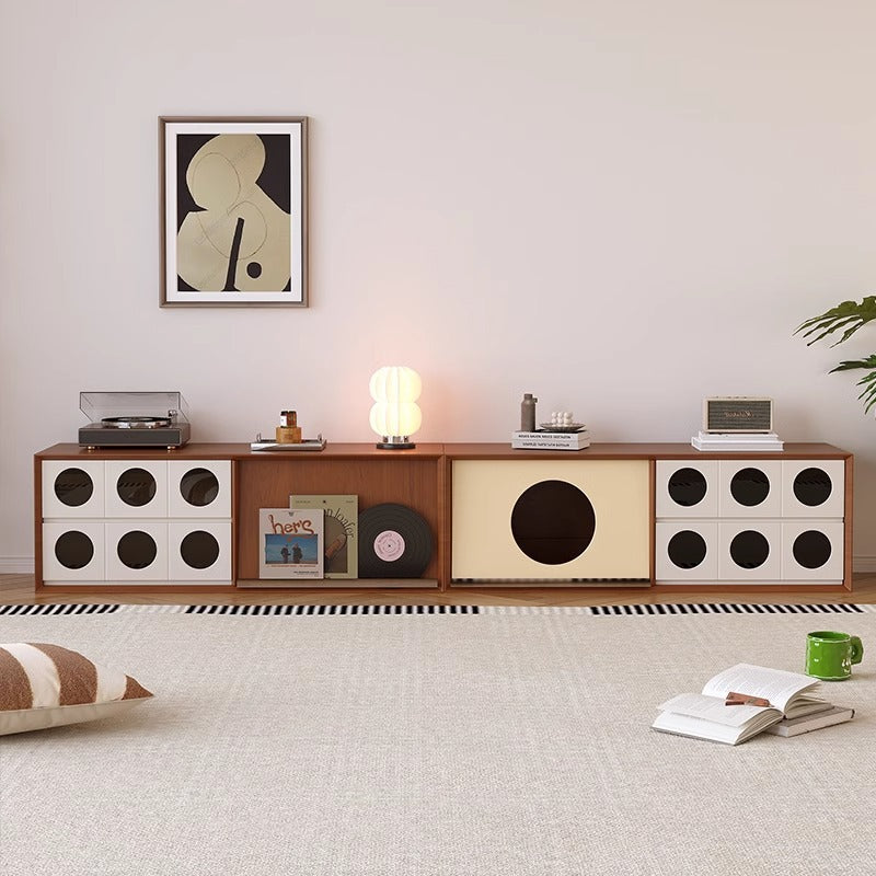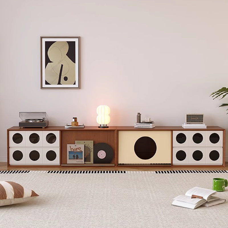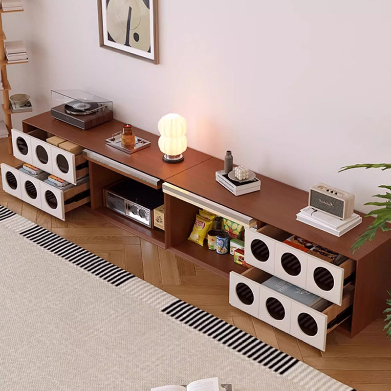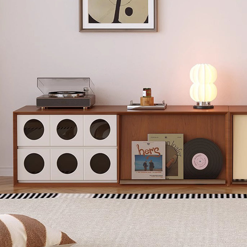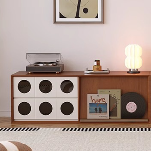 This Traditional French TV stand is crafted from pine wood, glass, and Solid Wood Multi-Layer Board, featuring a rectangular silhouette with rounded details in a warm pine wood tone. Designed with 2 drawers, a full floor-standing structure, and flip-up cabinet doors, it delivers strong load-bearing stability without wobbling, making it an ideal retro-style TV cabinet for living rooms, small apartments, and designer interiors.