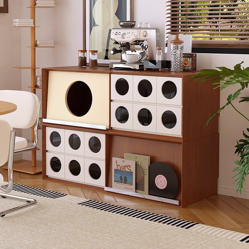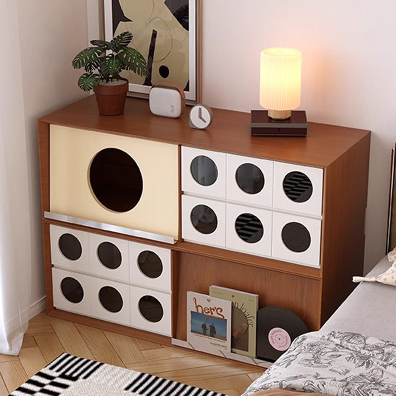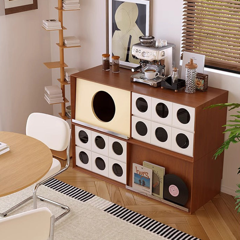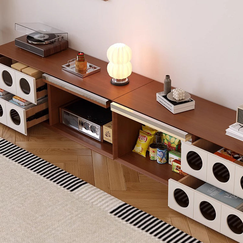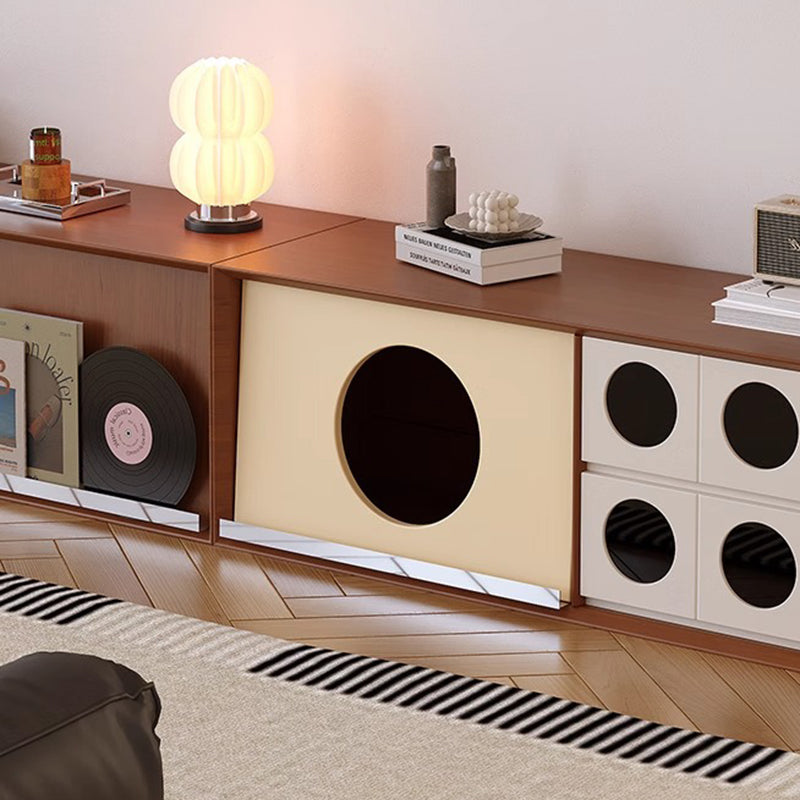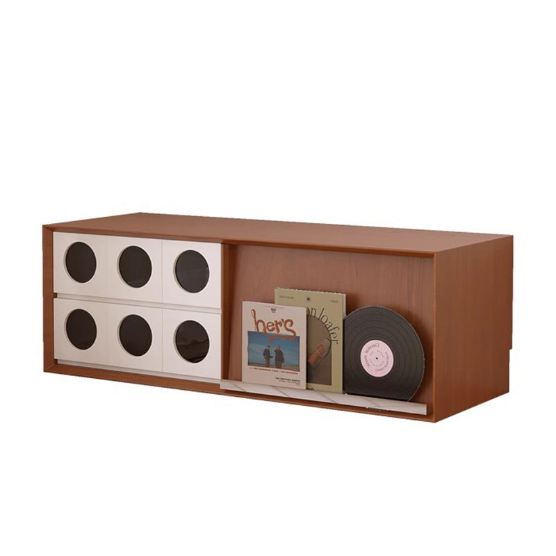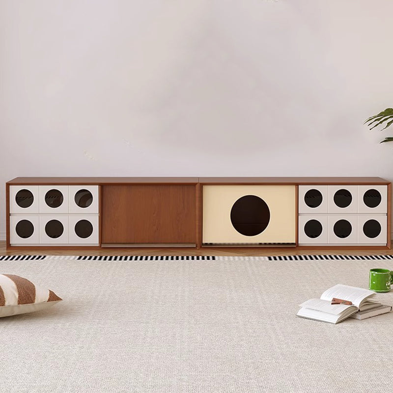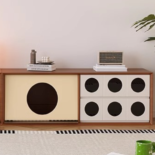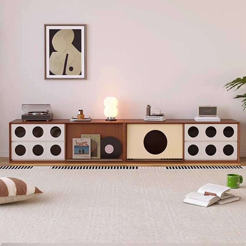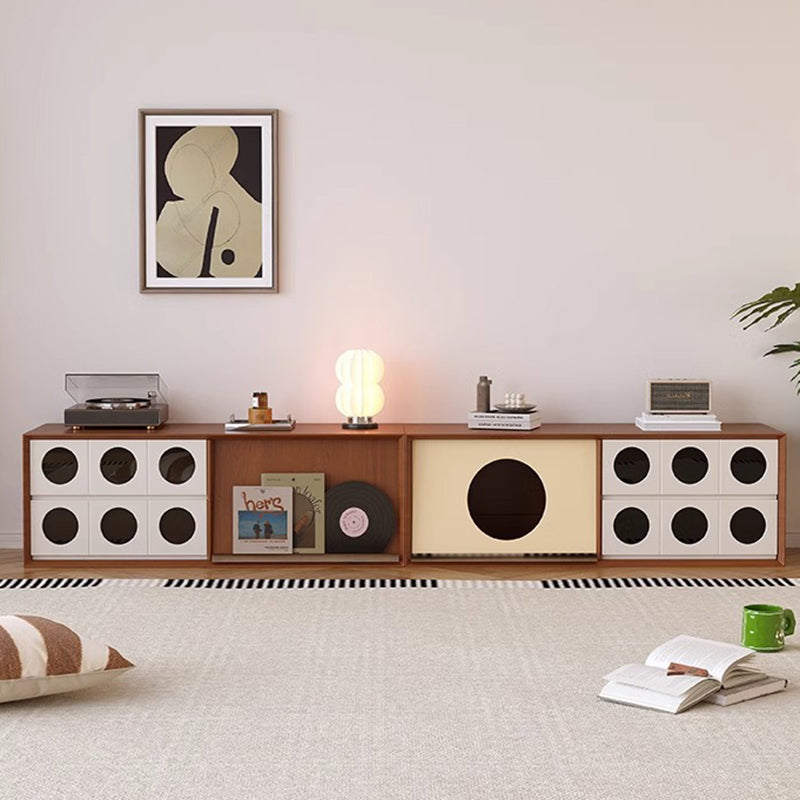 This Traditional French TV stand is crafted from pine wood, glass, and Solid Wood Multi-Layer Board, featuring a rectangular silhouette with rounded details in a warm pine wood tone. Designed with 2 drawers, a full floor-standing structure, and flip-up cabinet doors, it delivers strong load-bearing stability without wobbling, making it an ideal retro-style TV cabinet for living rooms, small apartments, and designer interiors.