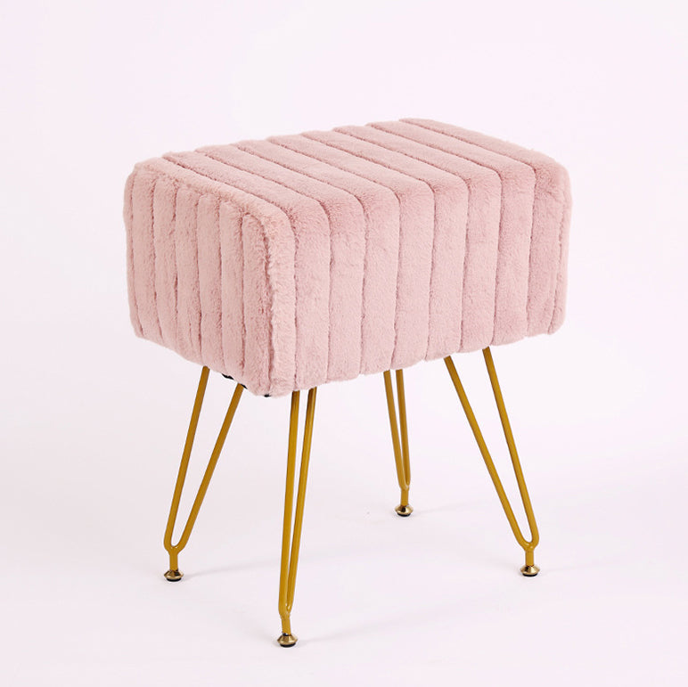 Contemporary Scandinavian Square Faux Rabbit Fur Medium Density Fiberboard Rebar Organizer Vanity Stool For Bedroom