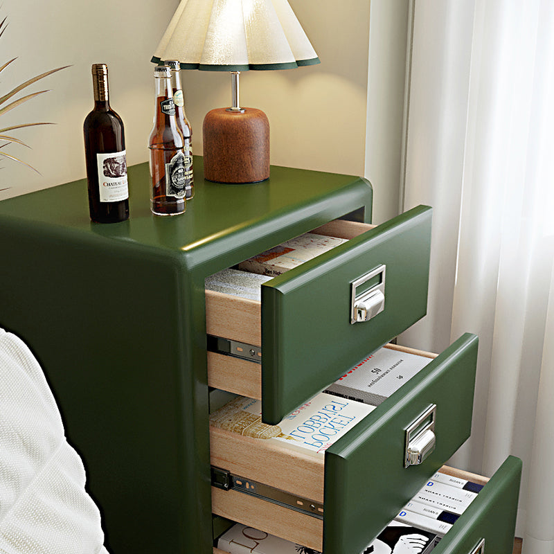 Functionality meets elegance with three spacious drawers, providing ample, organized storage for all your essentials. Each drawer is finished with attractive, textured metal handles, enhancing the vintage aesthetic. This cabinet is the perfect piece to introduce a tranquil, refined organizational solution and a subtle pop of color to your home décor.