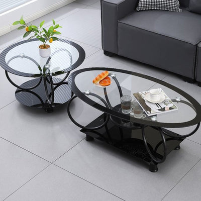 Modern Minimalist Round Ellipse Tempered Glass Galvanized Pipe Coffee Table For Living Room