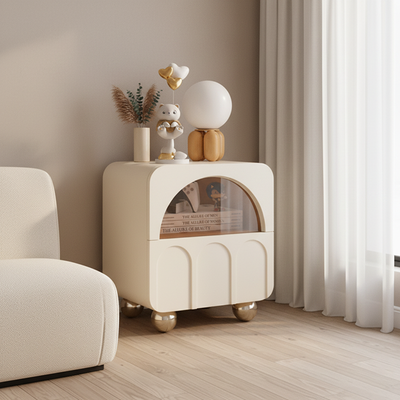Modern Minimalist Square MDF Nightstand 2-Drawer For Living Room & Bedroom