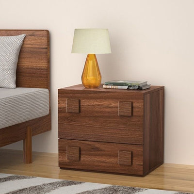 Modern Minimalist Square MDF Nightstand 2-Drawer For Bedroom