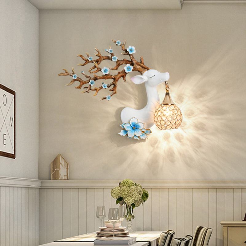 Diese moderne Art-Deco-Wandleuchte mit einem Licht zeichnet sich durch eine einzigartige Hirschkopfform aus, gefertigt aus hochwertigem Harz und Kristall. Erhältlich in Weiß, Blau und Pink, verleiht sie Ihrem Wohnzimmer, Schlafzimmer oder Flur einen eleganten und künstlerischen Touch. Mit hoher Lichtdurchlässigkeit und handgefertigtem Design kombiniert diese stilvolle Wandleuchte Funktionalität mit modernem Charme und ist perfekt, um Ihre Wohnkultur zu bereichern.