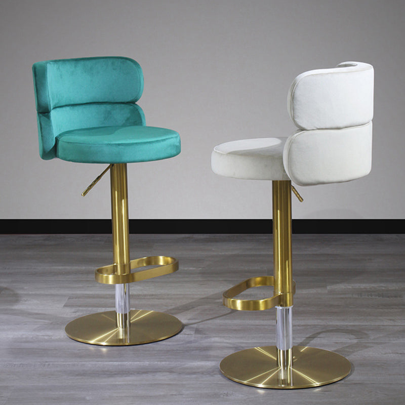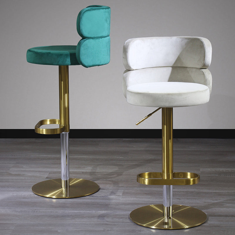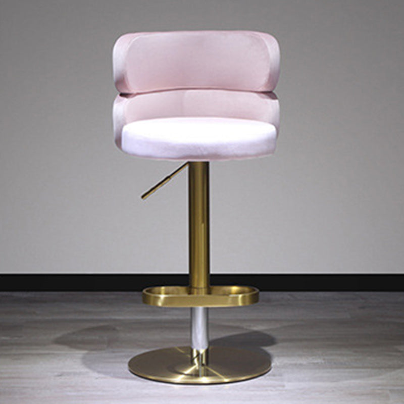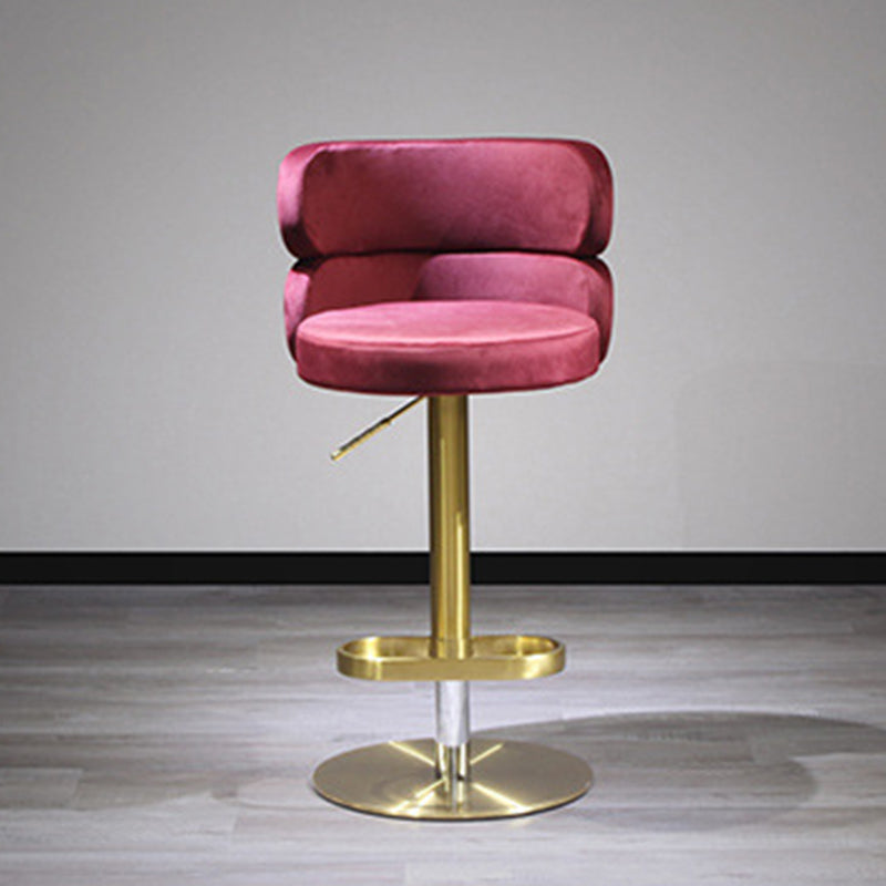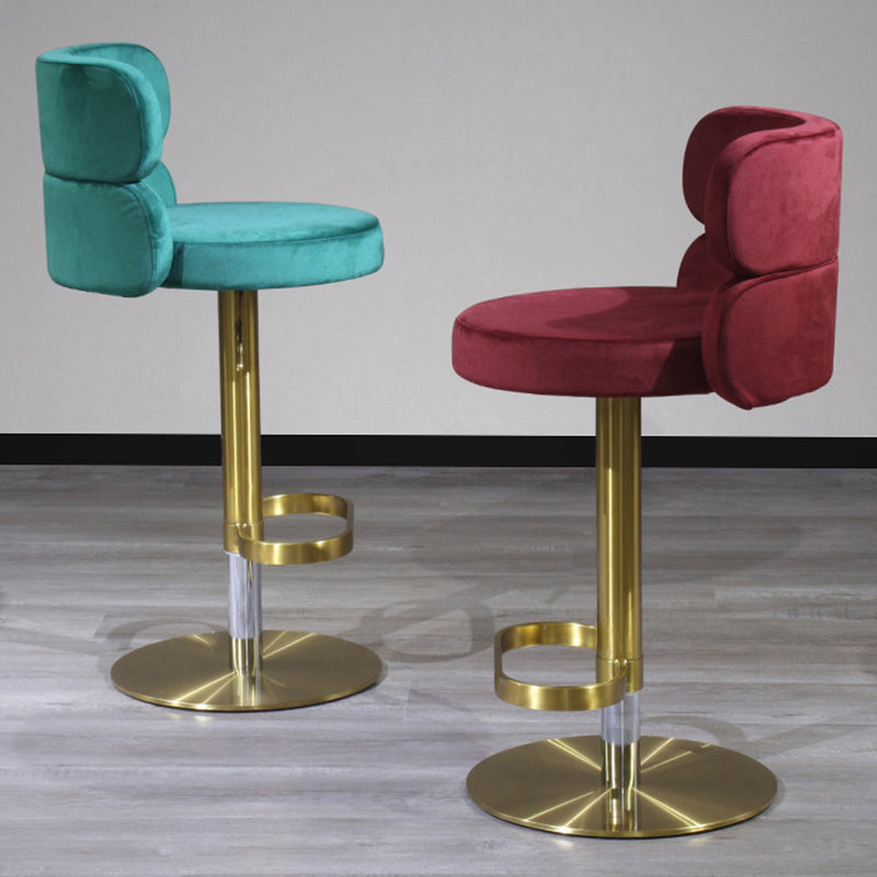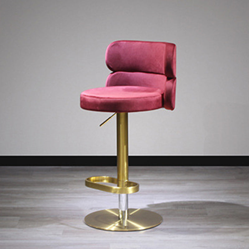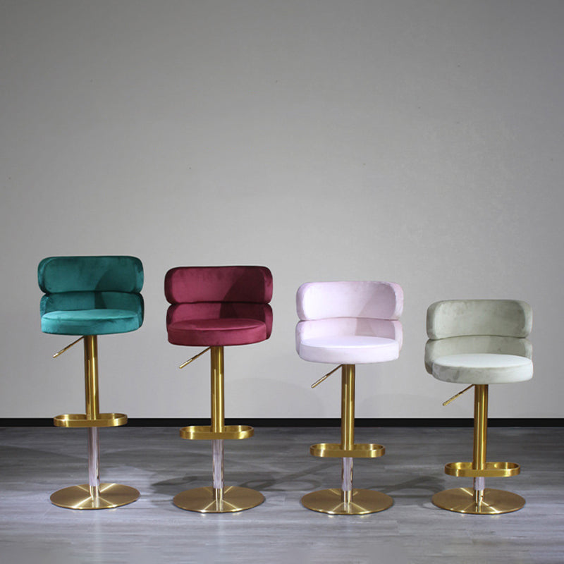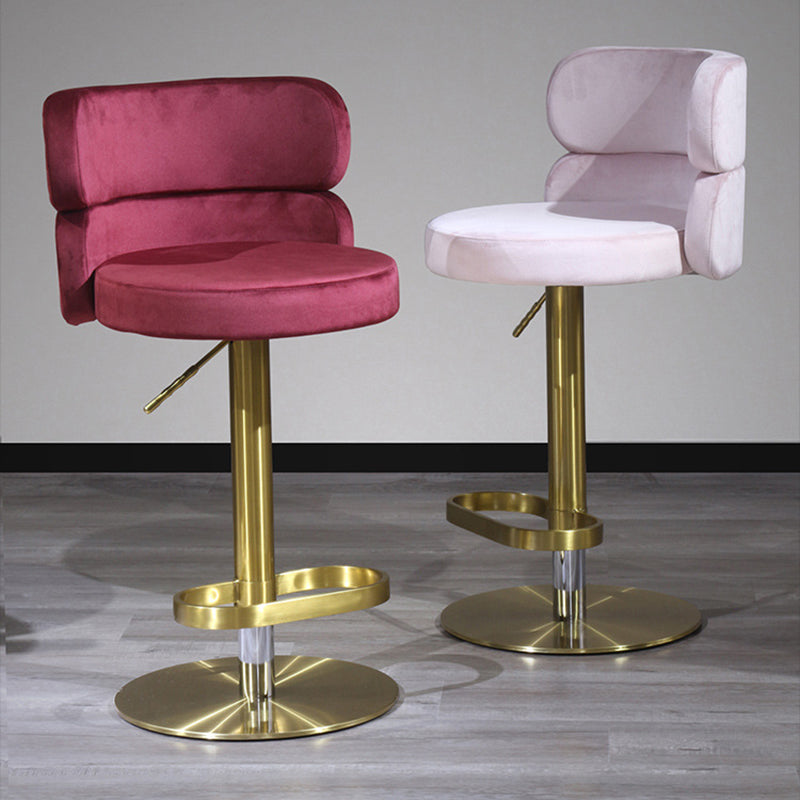 Infuse your home with a touch of glamour with this contemporary luxury bar stool. Combining a polished stainless steel frame with soft velvet upholstery, this piece is as visually stunning as it is inviting. The curved backrest is ergonomically designed for lasting comfort and support, while the smooth height adjustment and 360° swivel functionality offer effortless versatility. Built with a reinforced wide base for enhanced stability and treated for water- and stain-resistant durability, it remains practical for high-traffic areas. Available in beige, red, green, and pink, it is a striking addition to dining rooms, kitchen islands, and modern home bars.
