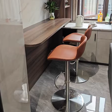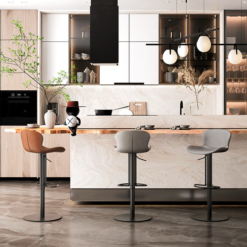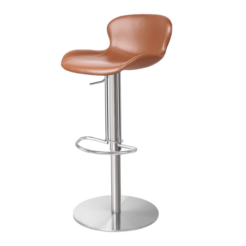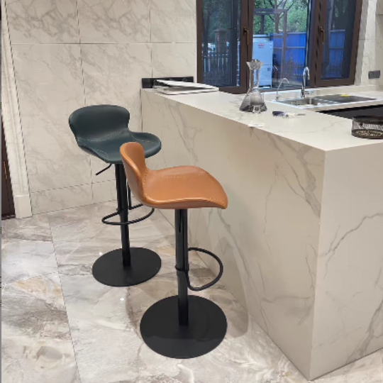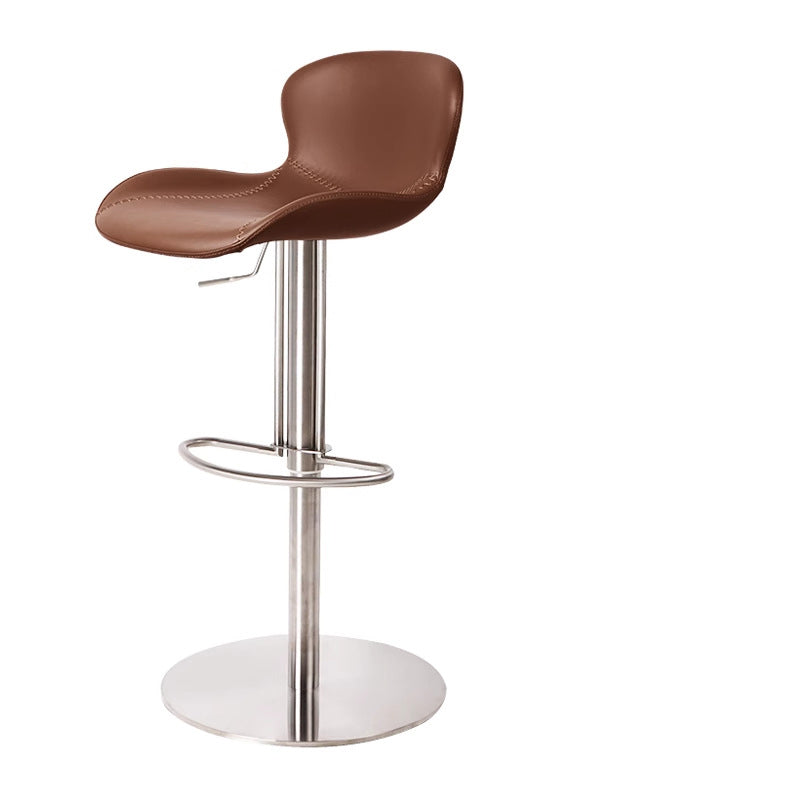 This modern swivel bar stool features premium Crazy Horse Leather, combined with stainless steel and carbon steel for outstanding durability and a refined industrial look. Designed with a 360° rotating seat, adjustable height, and an ergonomic curved backrest, it offers superior comfort and support.