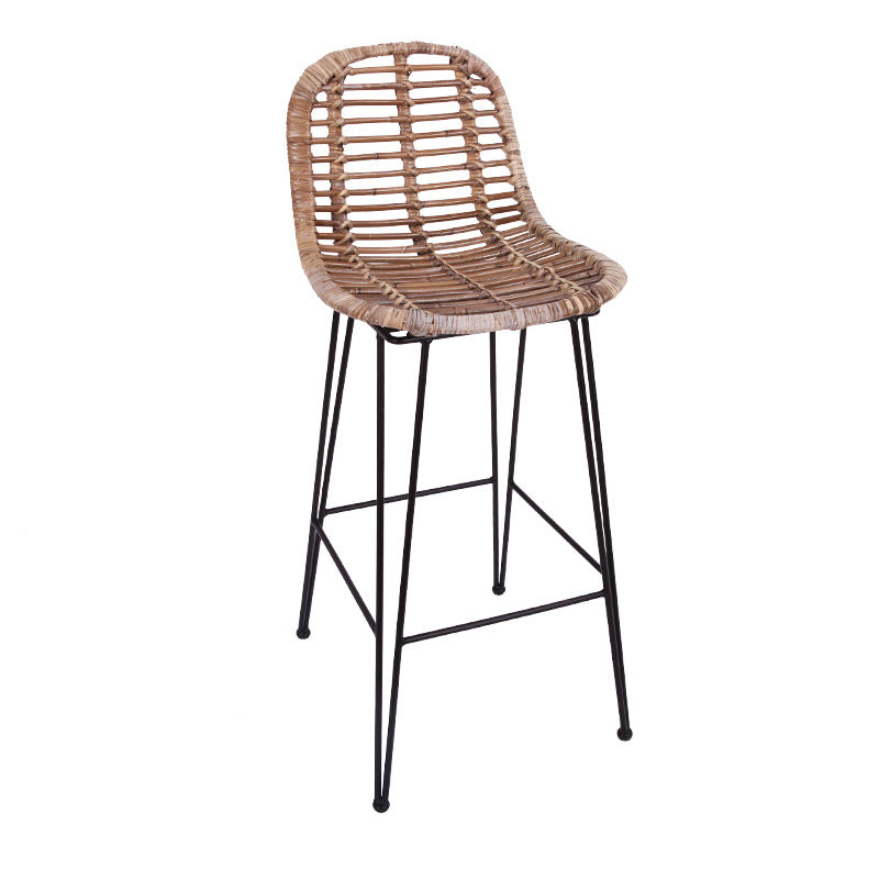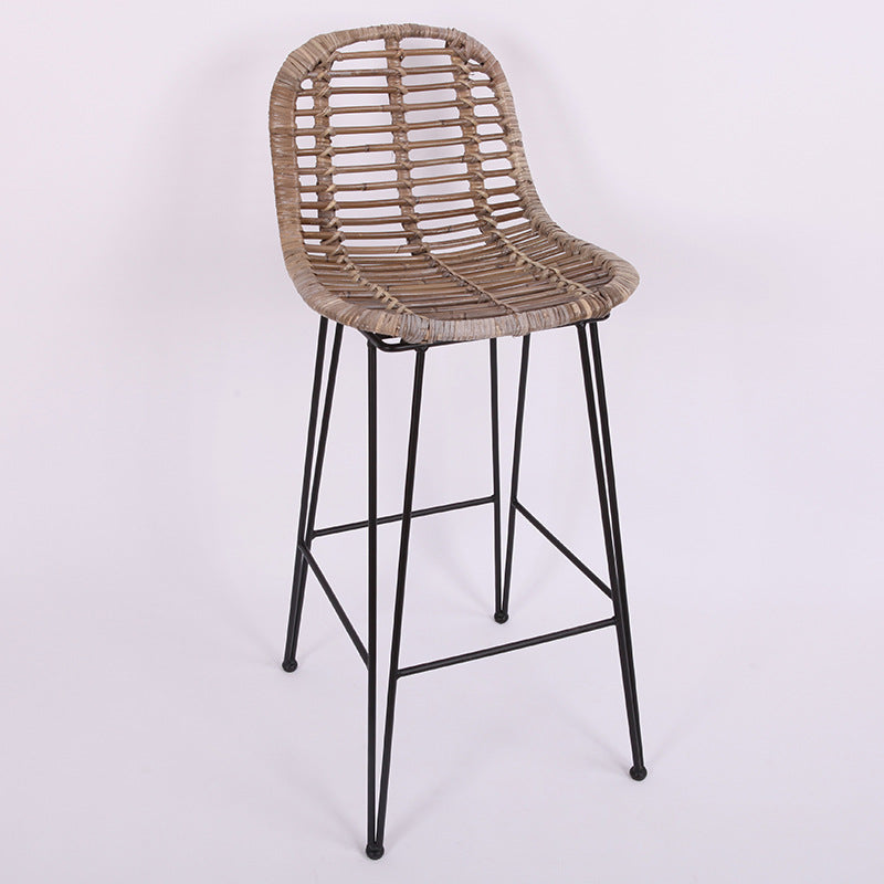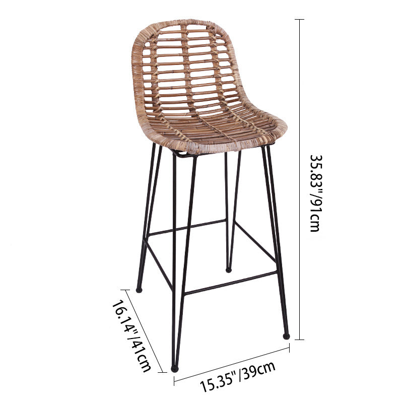 When morning light hits the kitchen counter, this traditional rustic Indonesian rattan bar stool---with hand-woven hollow texture oozing rural artisanal charm---awaits. Light, supple rattan wraps you in softness, while sturdy iron legs anchor it steadily for casual leans or coffee-time slouches, balancing rustic ease and reliable support. Even as midday kitchen air warms and hums, the rattan's moisture-heat absorption keeps the seat cool; its soft tan and black iron legs fit the rustic kitchen’s warm, unpolished vibe, making every bar-side bite feel slow, relaxed, and right at home.