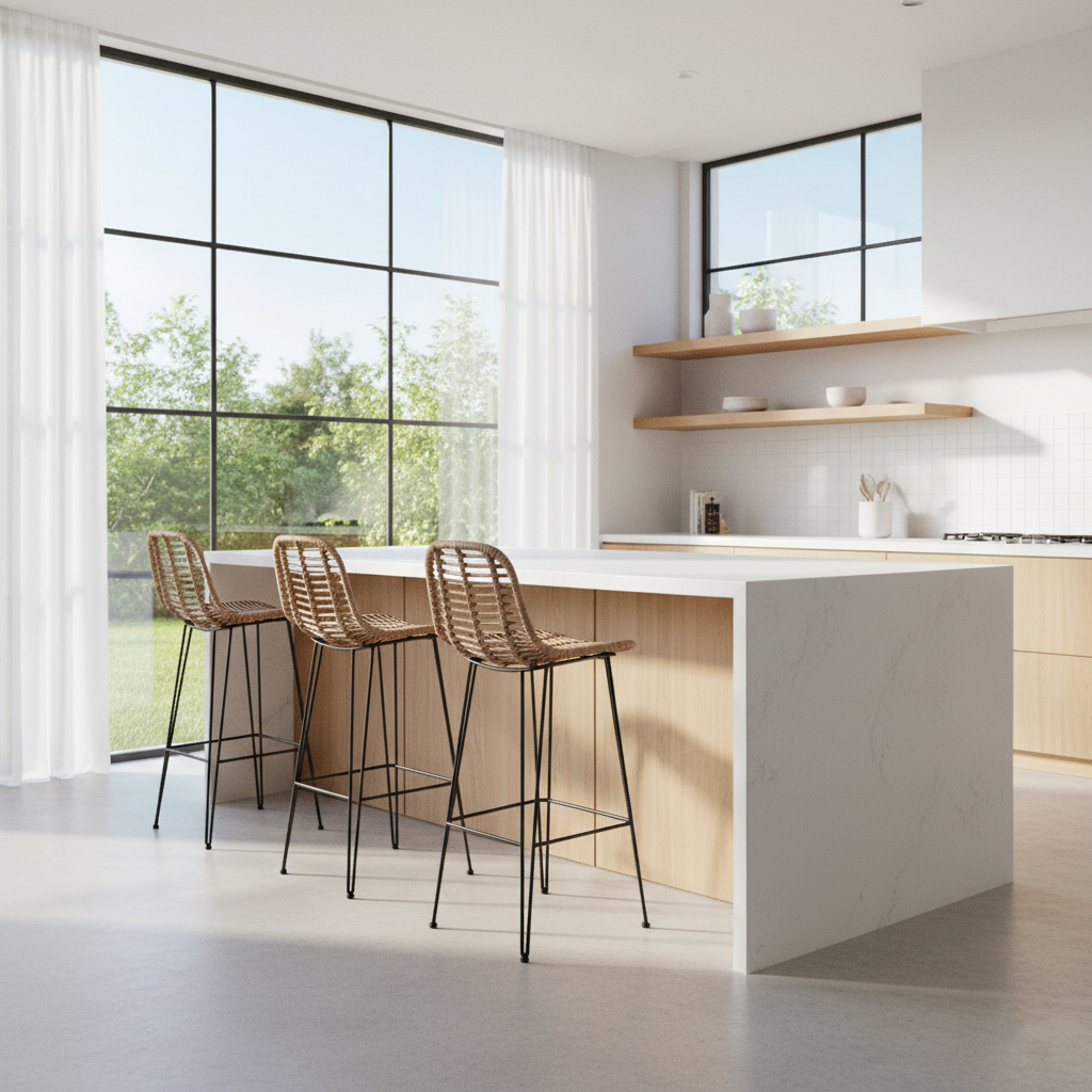 - Moisture-Absorbing Comfort: Rattan's inherent moisture & heat absorption keeps you cool during long stays at the kitchen bar.