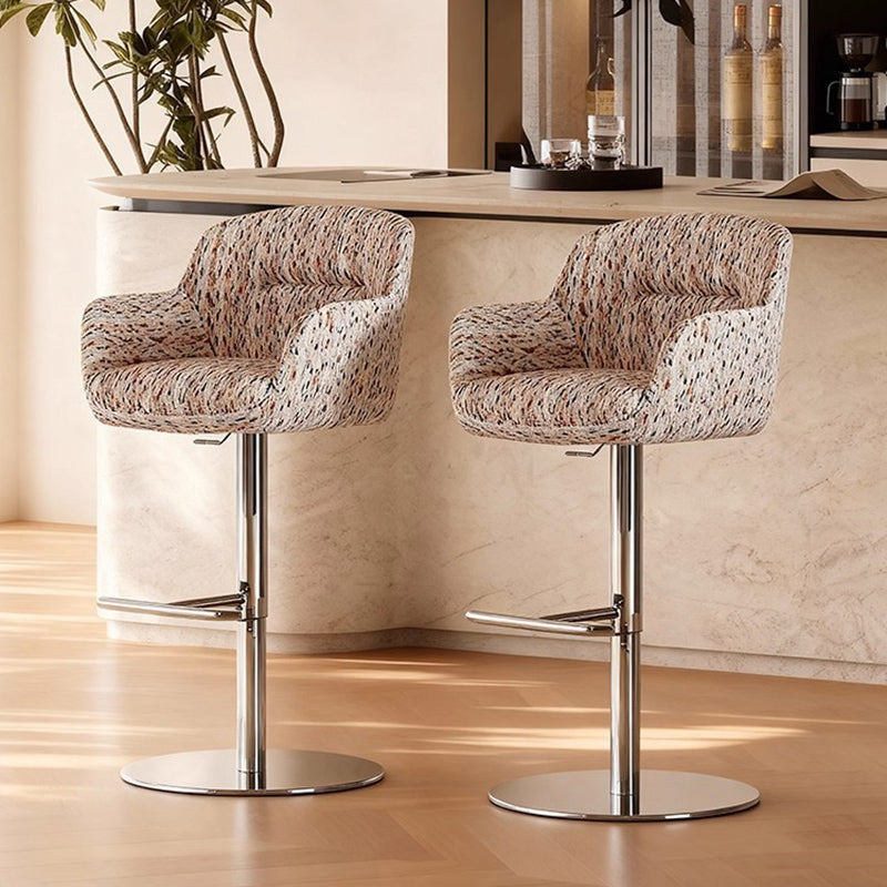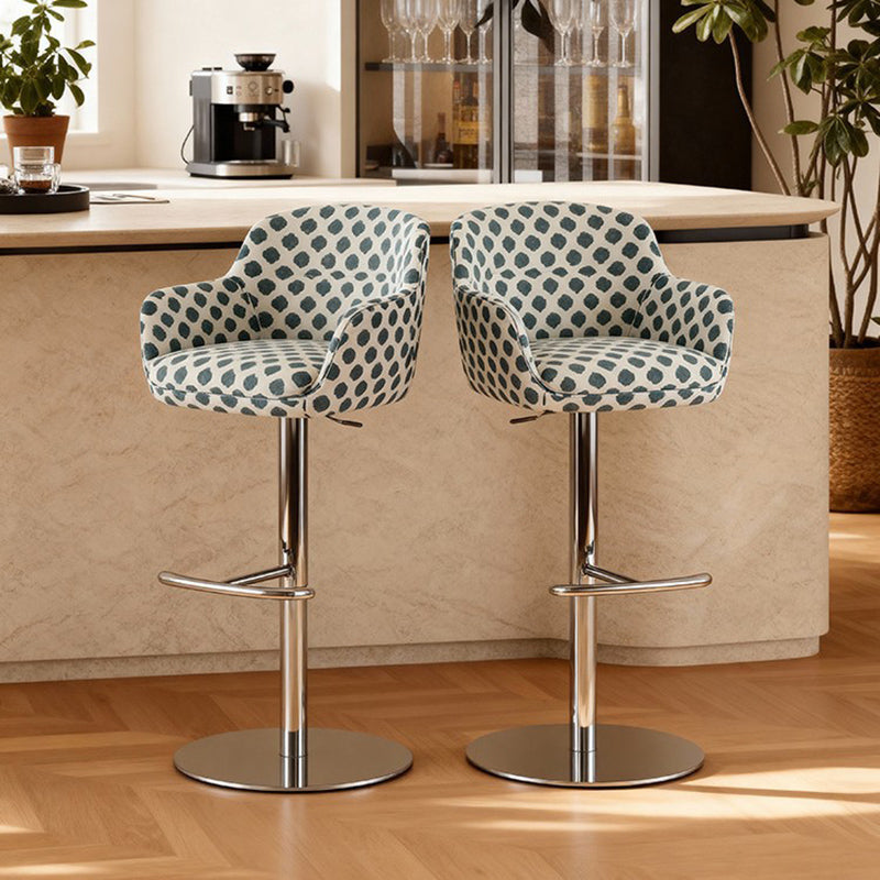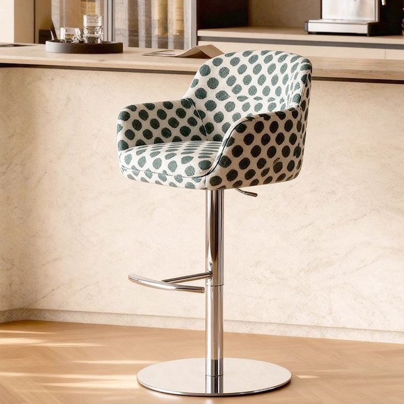 Elevate your interior with this Italian-inspired curved bar stool, where modern minimalism meets exceptional comfort. Wrapped in a refined blend of premium fabric and eco-leather, the ergonomic silhouette features integrated armrests and a supportive backrest. The stool is anchored by a sleek, adjustable stainless steel frame that ensures lasting stability. Available in a curated palette of colorful, it serves as a sophisticated statement piece for contemporary kitchen islands and home bars.