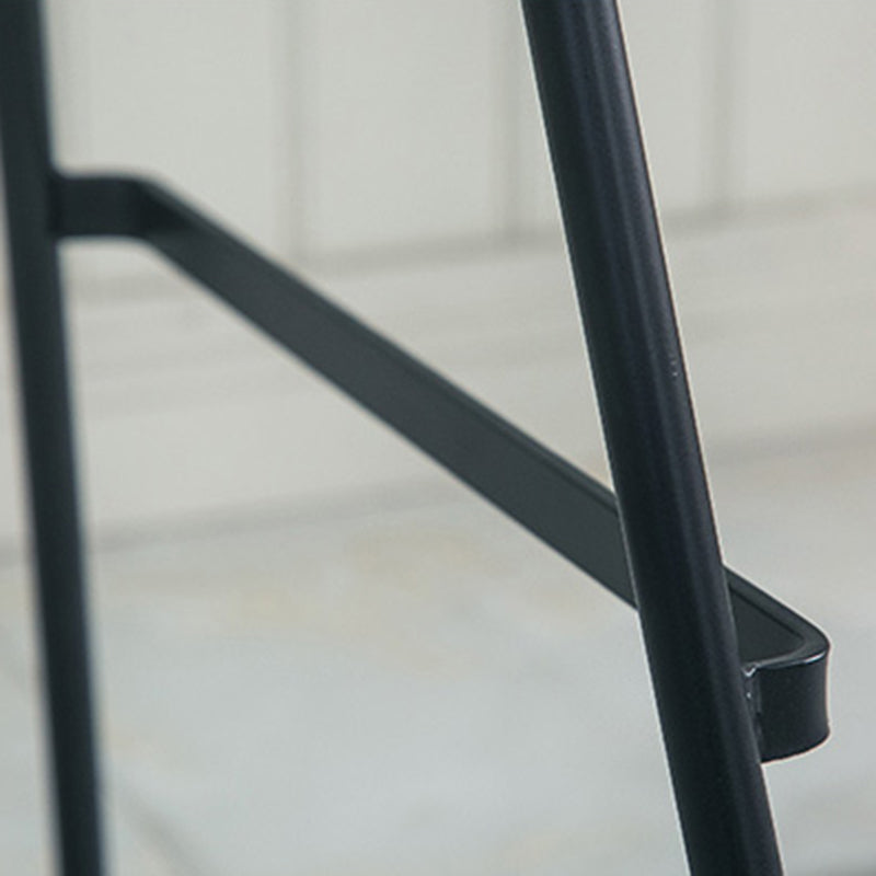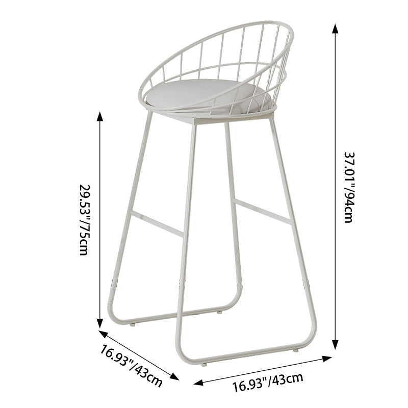This modern minimalist bar stool features a durable iron frame paired with a comfortable leather seat, available in black or white. Designed with a supportive backrest and built-in footrest, it offers both style and comfort—perfect for dining rooms, home bars.