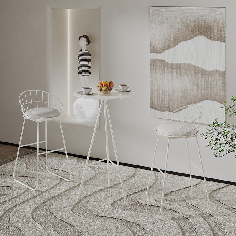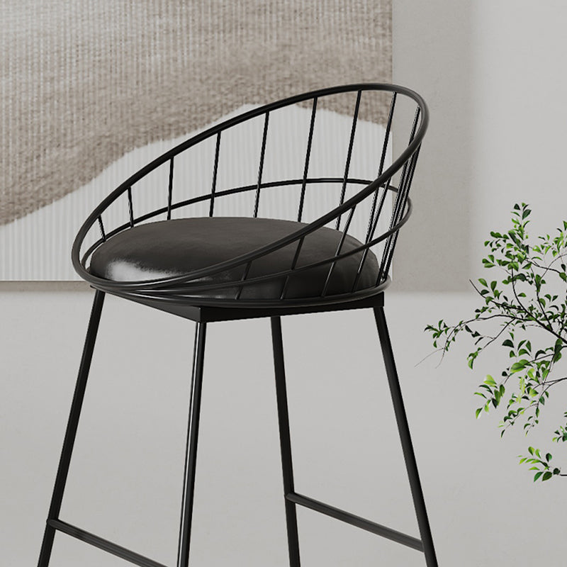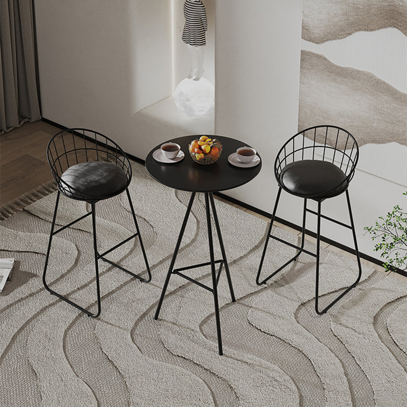 Modern Minimalist Wrought Iron & Leather Round Bar Stool With Backrest Footrest For Dining Room