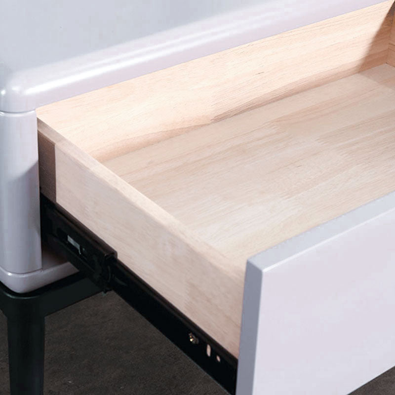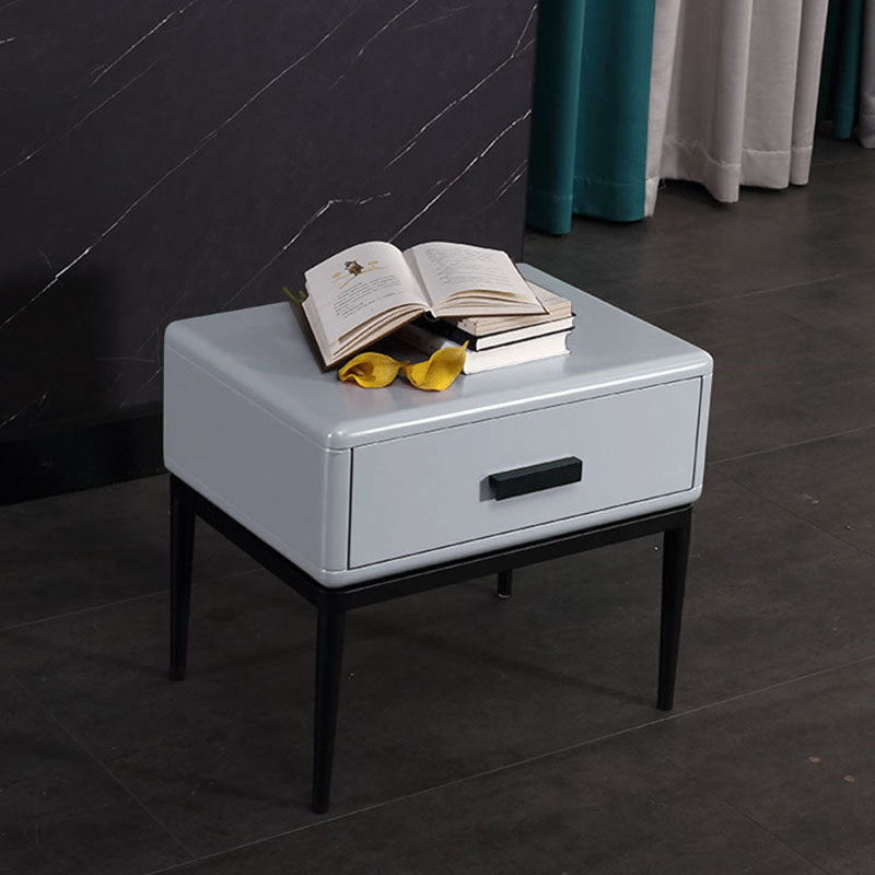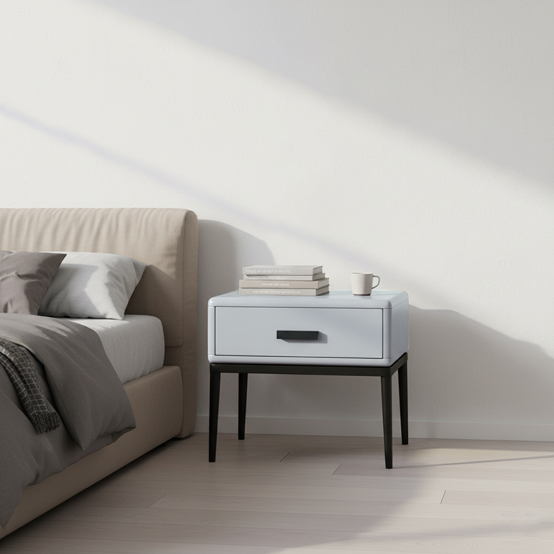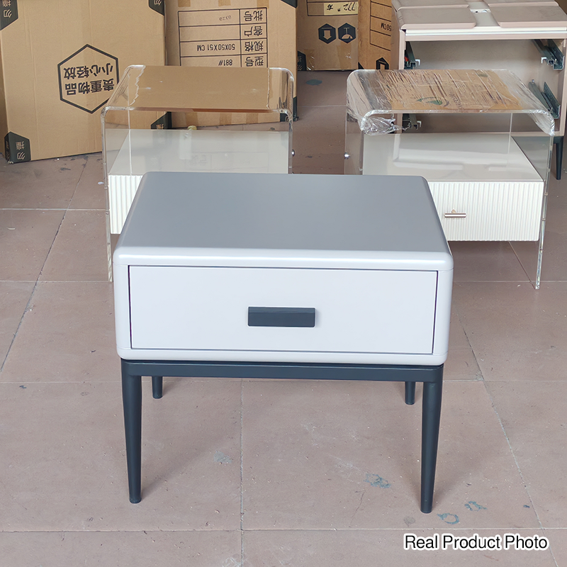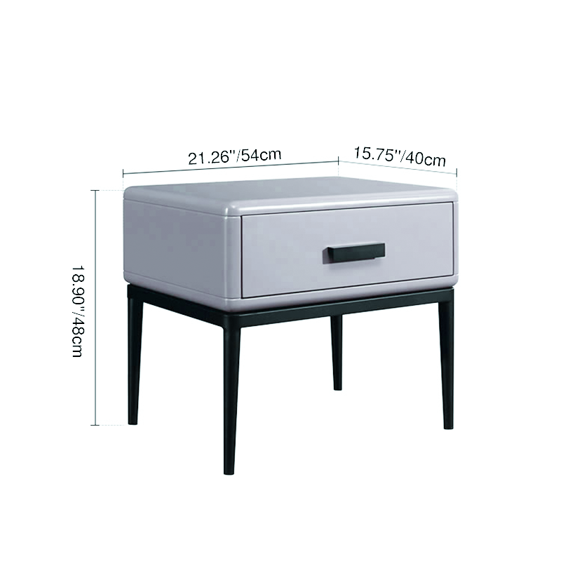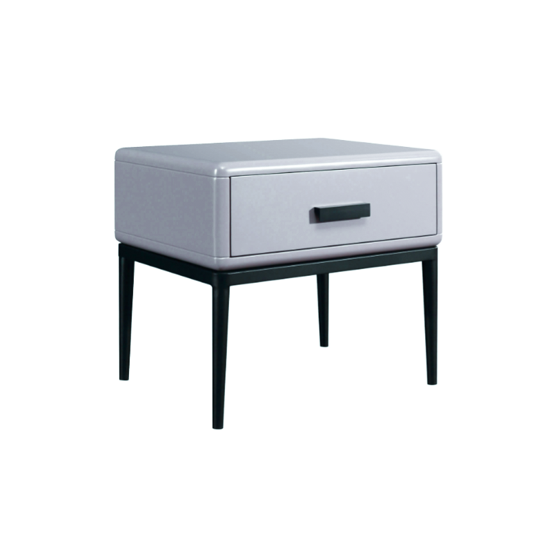 Dieser zeitgenössische industriell gestaltete Nachttisch verfügt über einen E1 umweltfreundlichen Rahmen, massive Holzschubladen für praktische Aufbewahrung, Eisenbeine und Backlack-Handwerkskunst, die eine markante Textur in ihrer Robustheit zeigen. Es ist eine Hardcore-Wahl für die Schlafzimmeraufbewahrung und ein industrielles Markenzeichen für den Raum, das moderne Kühnheit und Ungebundenheit in das häusliche Leben einfließt.