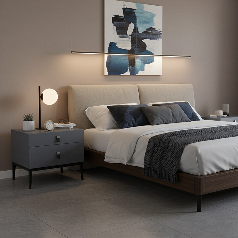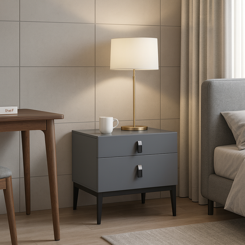 Modern Light Luxury Design: Inspired by Morandi tones, this gray nightstand adds calm elegance and understated luxury to modern bedrooms.