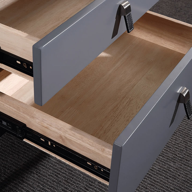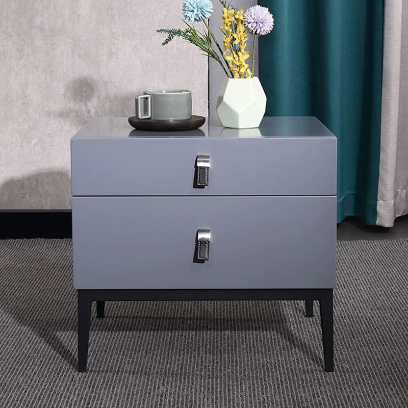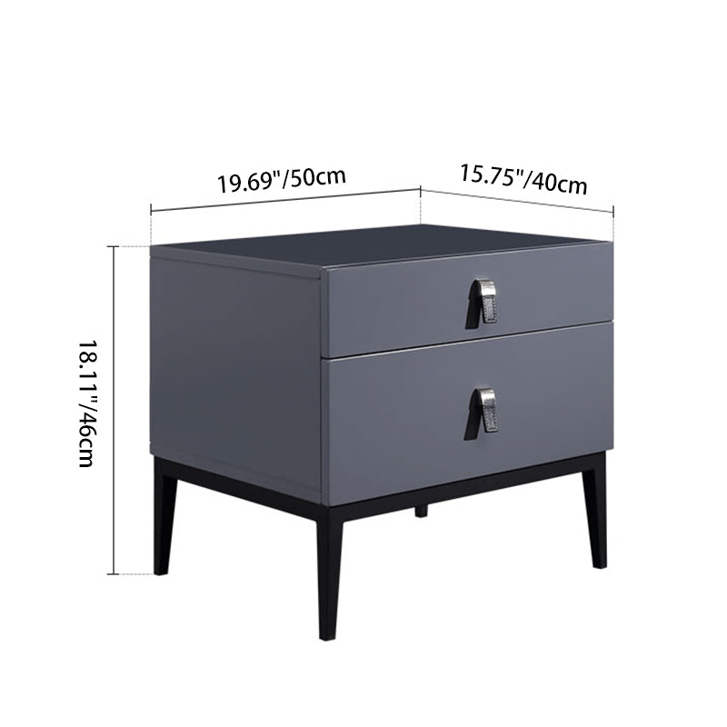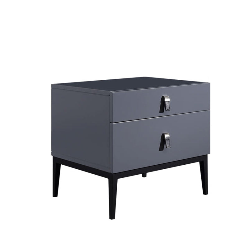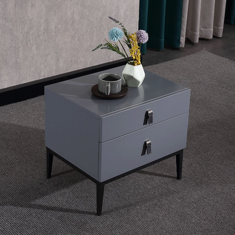 Infuse your bedroom with timeless elegance with our Modern Light Luxury Nightstand in the sophisticated Morandi Grey finish. Its square silhouette and sleek lines define a minimalist yet refined aesthetic that seamlessly complements any decor style. Constructed for both aesthetic appeal and enduring durability, this piece features E1-grade eco-friendly MDF, solid wood drawers, and sturdy iron legs. Two spacious drawers provide organized storage for your bedside essentials, adding a serene, sophisticated charm to your personal space.