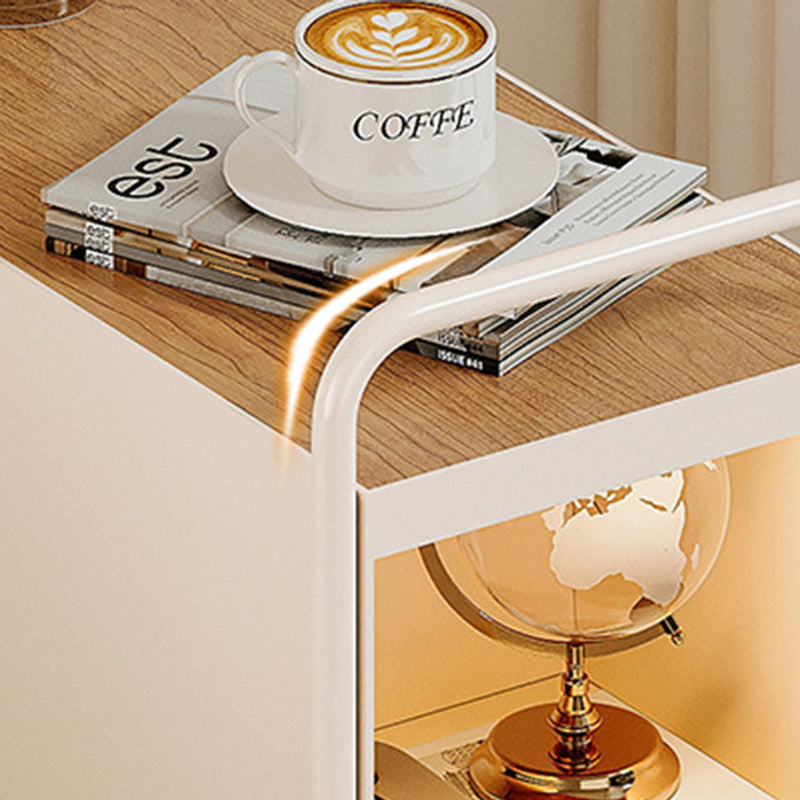 Modern Minimalist Rectangular Solid Wood Multi-Layer Board Iron End Table 2-Drawer For Living Room
