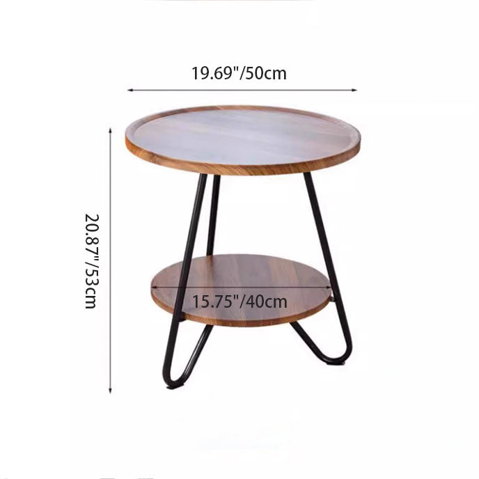 Modern Minimalist Round Medium Density Fiberboard Carbon Steel End Table 2-Tier 3-Leg For Living Room