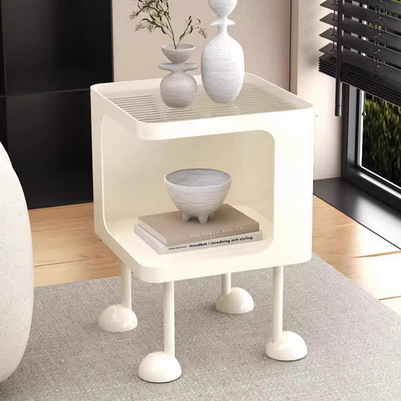 This contemporary nightstand features a sleek rectangular silhouette with a tempered glass top and a durable iron frame finished in high-temperature baked paint for long-lasting wear resistance. Designed with a stable, strong load-bearing structure and a 2-tier layout, it offers practical storage for bedside essentials. Available in black or white, this modern piece brings a clean, creative touch to any bedroom.