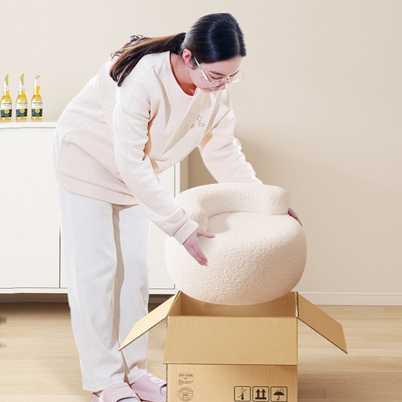 Contemporary Nordic Soft Fluffy Arc Solid Wood Lambswool Sponge Low Stool Backrest Armrest For Living Room