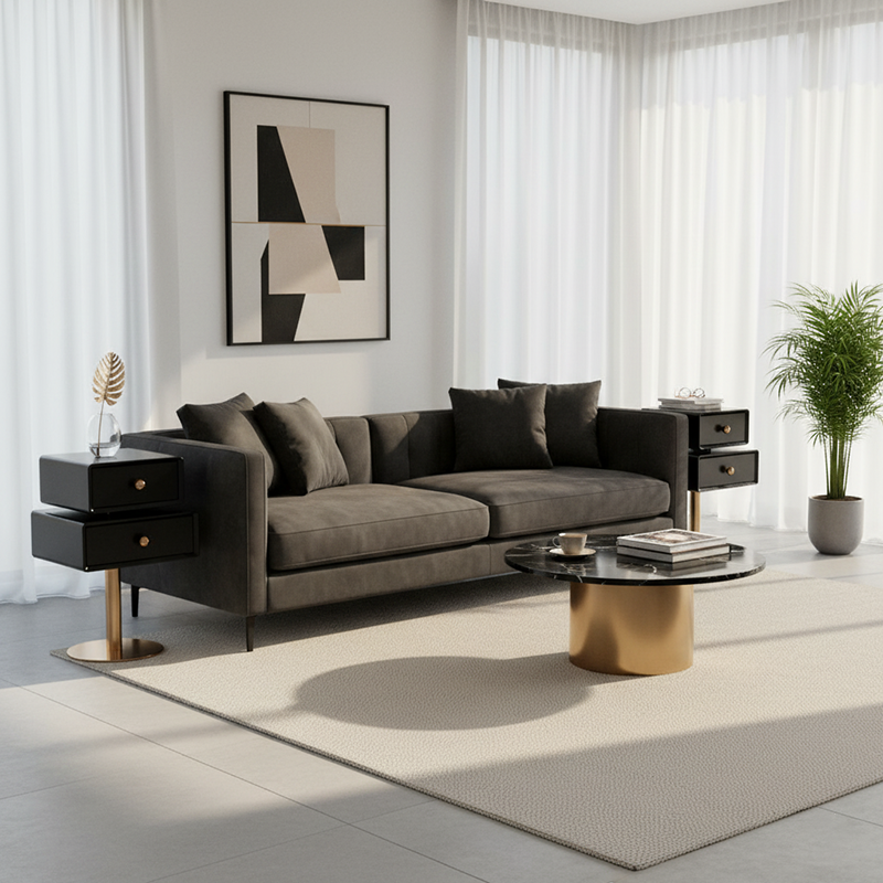 Rotating Dual Drawers: Provide flexible storage access and customizable display angles.