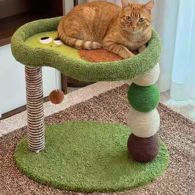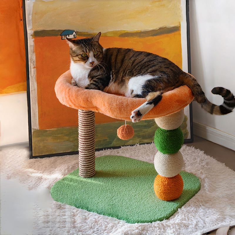Beyond its playful look, the Orchard Oasis is built for high-performance durability and feline wellness. The structural pillars are fully wrapped in industrial-grade natural sisal rope, providing a rugged, satisfying texture for healthy scratching that keeps your furniture safe from claws. Built on a reinforced, weighted foundation, this tree offers "Rock-Solid" stability for 1-2 cats (up to 7kg / 15.5 lbs each). Its space-saving circular footprint maximizes vertical territory without cluttering your floor plan, making it the premier choice for shoppers seeking aesthetic fruit-shaped cat trees, modern apartment cat condos, colorful small-breed scratching posts, and citrus-themed pet furniture.
