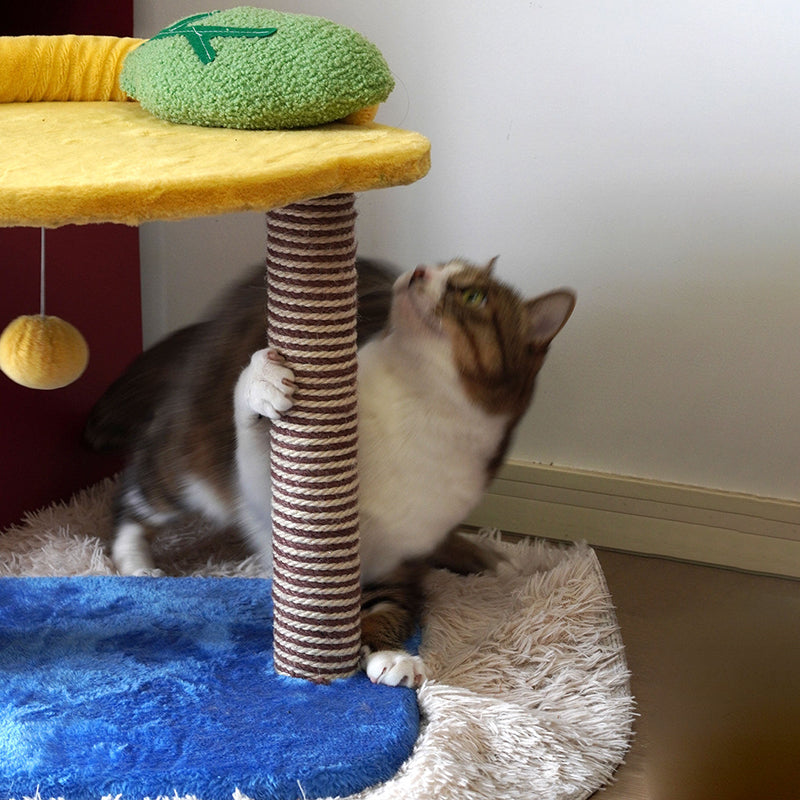 Brighten up your pet’s world with the Orchard Oasis, a vibrant, fruit-inspired cat tree that brings a refreshing "Pop-Art" aesthetic to your home. This compact 2-level activity tower is designed to be the ultimate small-space solution, featuring a secluded ground-floor "Grotto" condo for high-security napping and an elevated "Fruit-Slice" perch for birdwatching. Dressed in a cheerful palette of Zesty Yellow, Citrus Orange, and Leaf Green, this whimsical tower serves as a functional piece of "Home Decor Art," injecting a burst of energy into North American apartments, dorms, or cozy bedroom nooks.