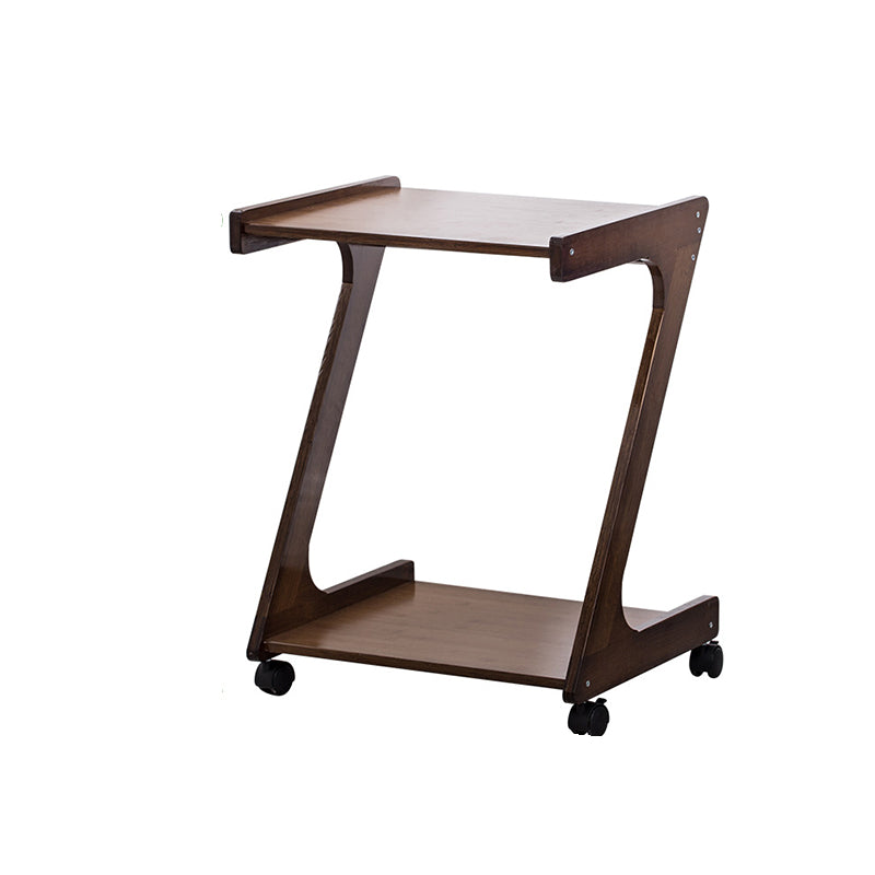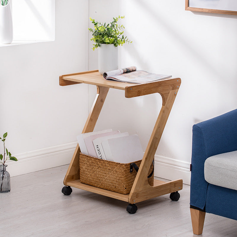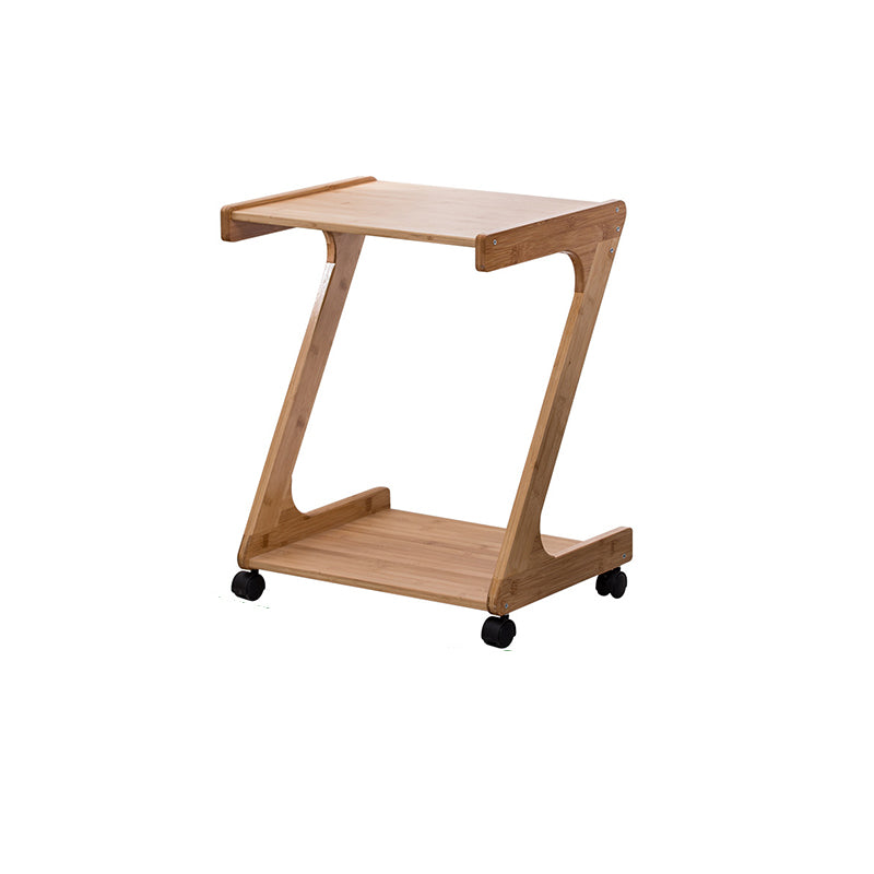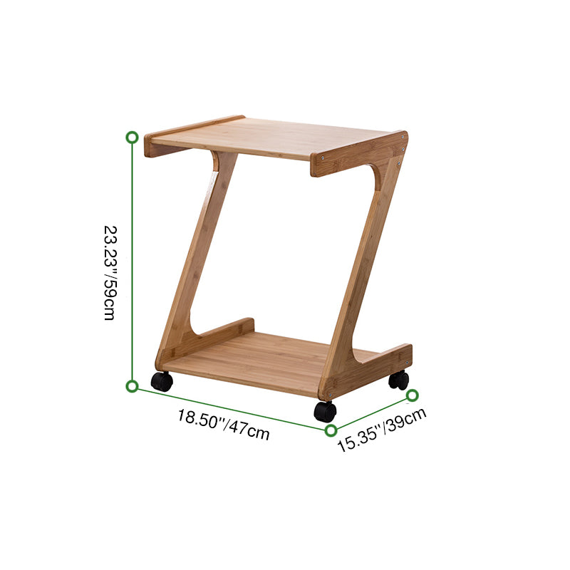 This Traditional Chinese bamboo side table features a movable Z-shaped rectangular design with 2 functional tiers, making it ideal as a sofa side or bedside table in the living room. Finished in natural wood or walnut tone, it is designed with smooth-rolling caster wheels for easy movement, a compact versatile form, and clear natural bamboo grain, offering effortless mobility, visual warmth, and everyday practicality.