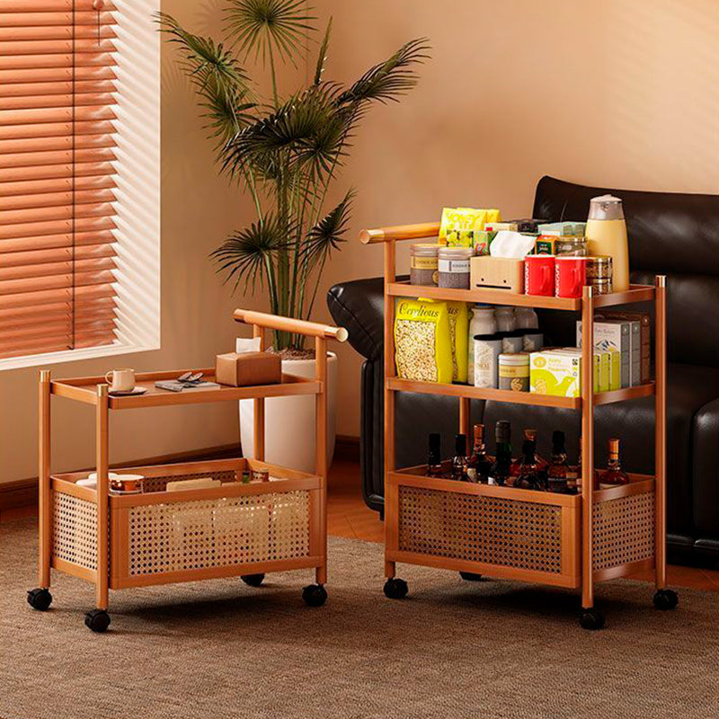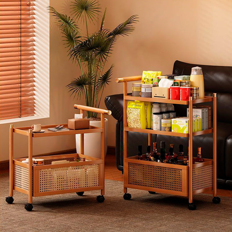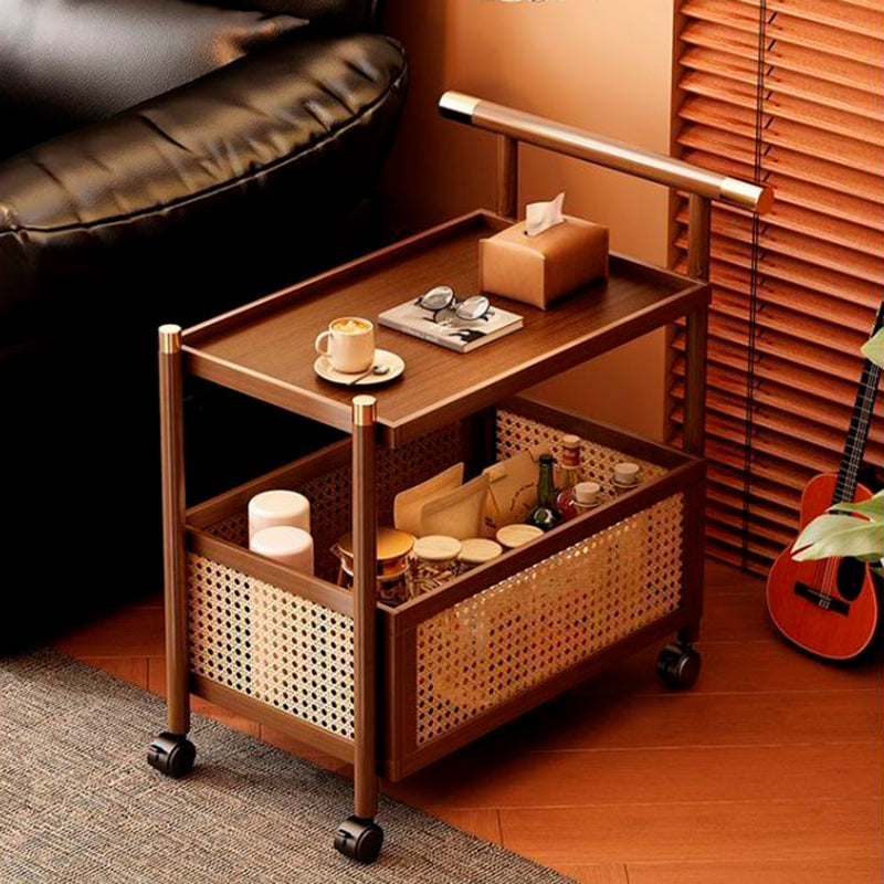 This Traditional Chinese style side table combines durable bamboo with woven rattan, featuring a mobile rectangular design available in walnut or natural finishes. With 2/3-tier storage and strong load-bearing performance, it offers versatile organization for any living room setup, enhancing both function and aesthetic.