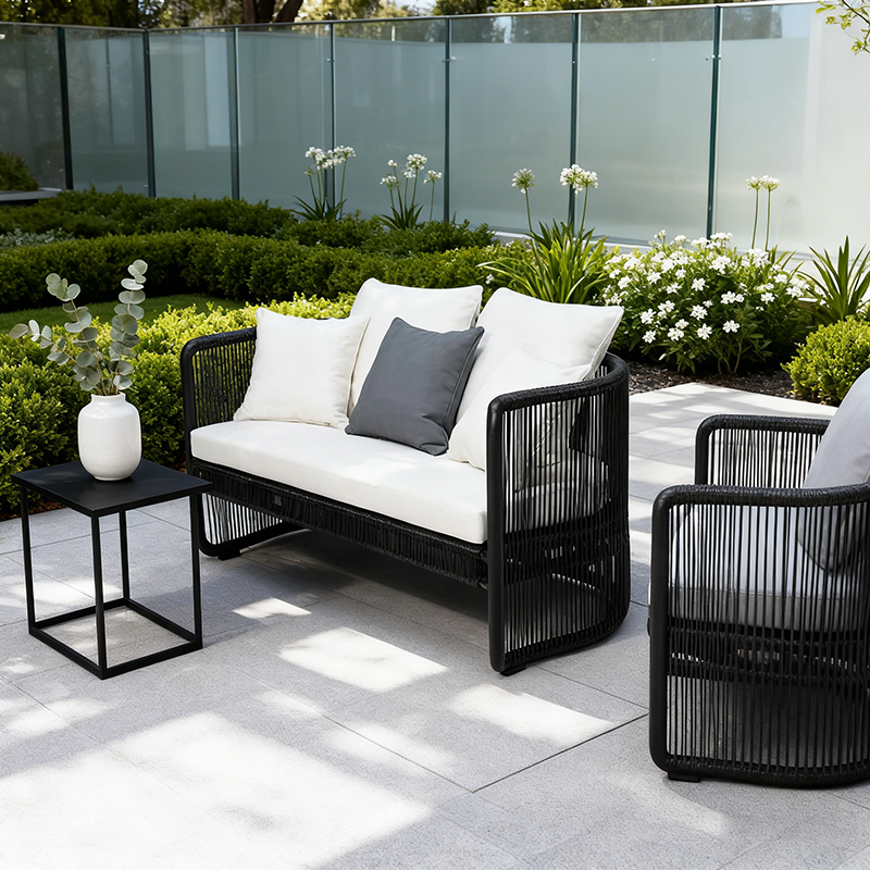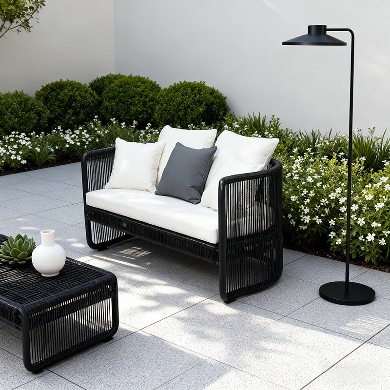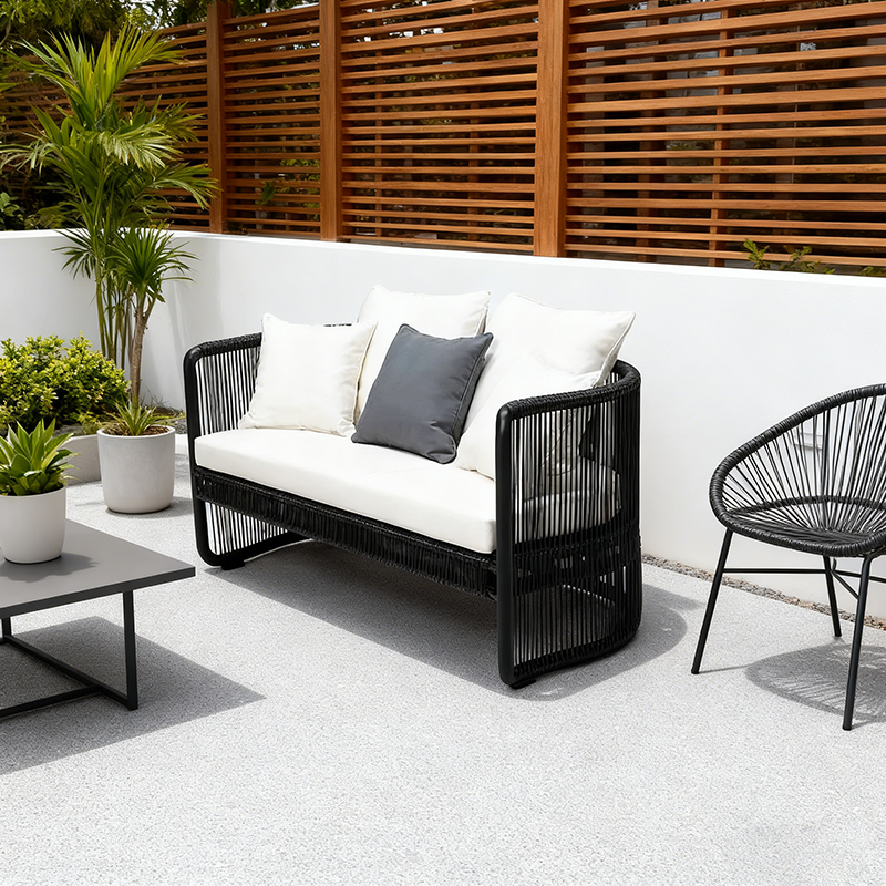 Designed for ultimate comfort, the sofa is equipped with a supportive backrest and armrests, complemented by quick-drying cushions encased in waterproof fabric. Its robust construction guarantees strong stability and exceptional long-lasting weather resistance.