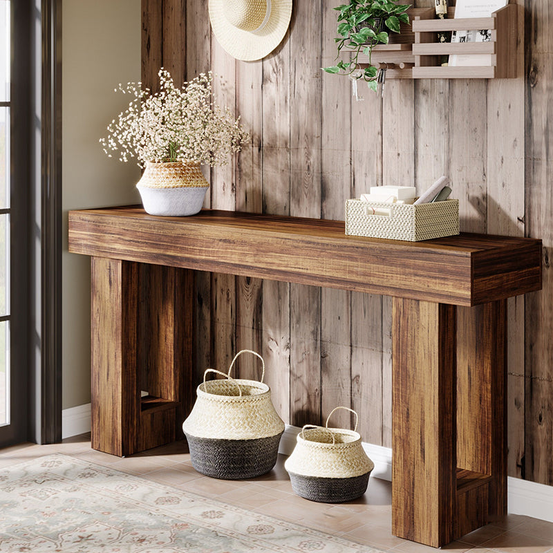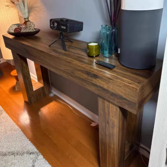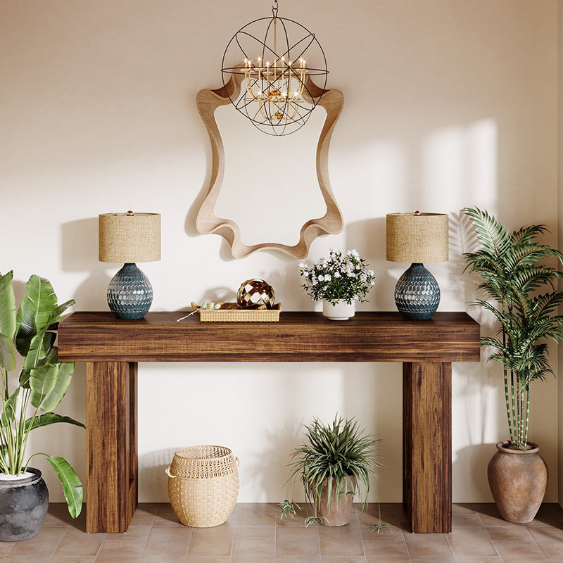 This Traditional Chinese rectangular side table is crafted from durable MDF, featuring a 1-tier streamlined console design ideal for living rooms, entryways, and boutique homestays. Available in brown, black, gray, and light brown, it showcases vintage-inspired natural textures and a thickened, stable structure, delivering a refined wabi-sabi aesthetic with subtle American retro elegance.