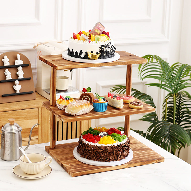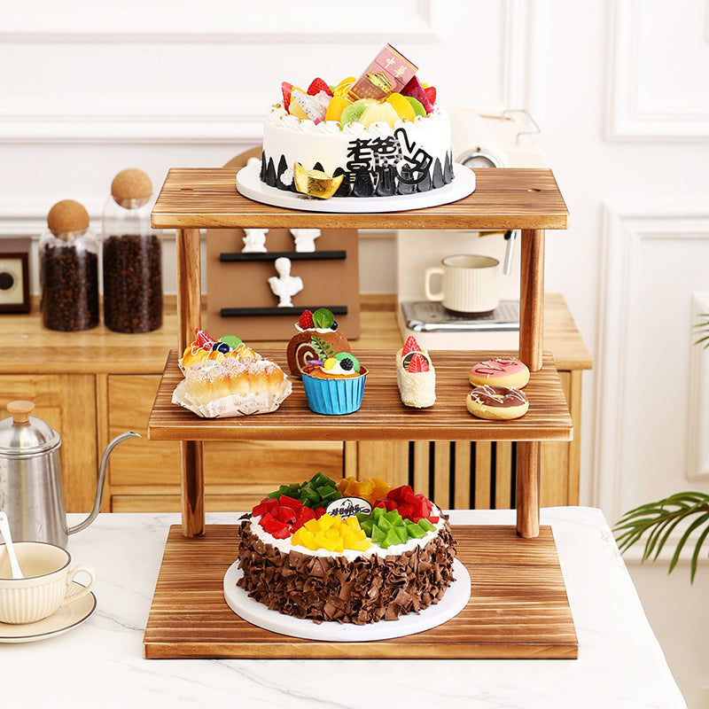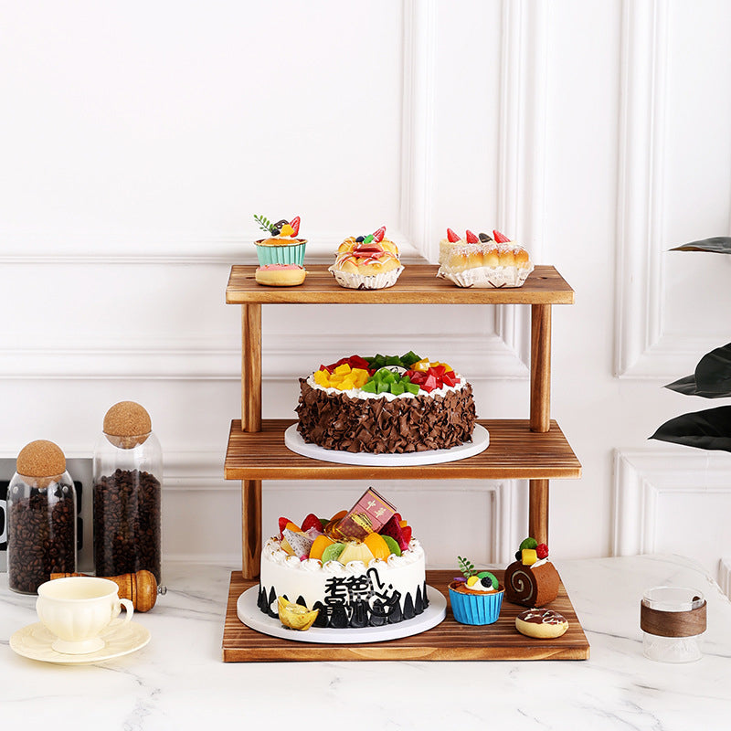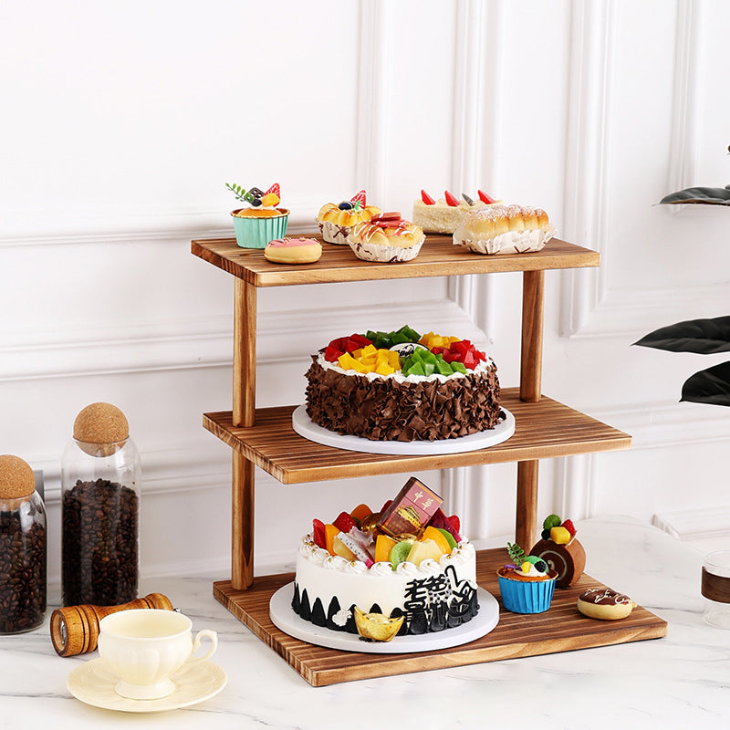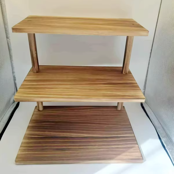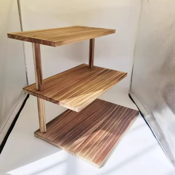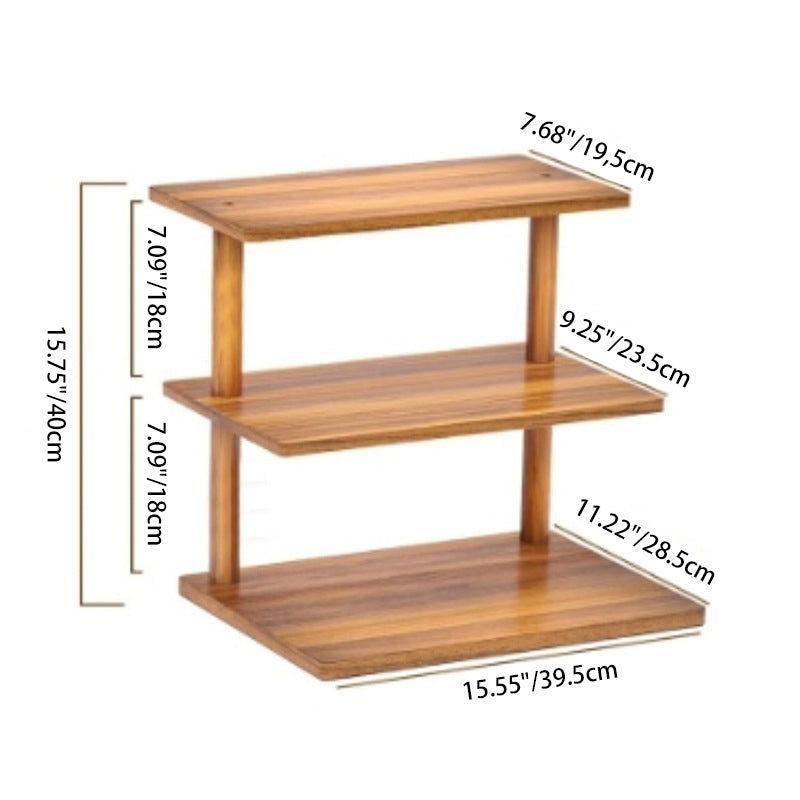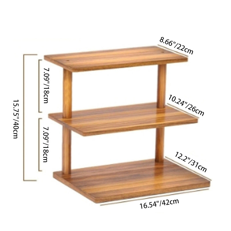 This Traditional Chinese storage shelf is crafted from solid pine wood in a natural wood finish, featuring a 3-tier rectangular design for organized display and storage. Designed to be moisture-resistant and structurally stable, it includes smooth rounded edges for safety, making it ideal as a dessert stand, kitchen seasoning rack, or indoor plant display shelf in the living room.