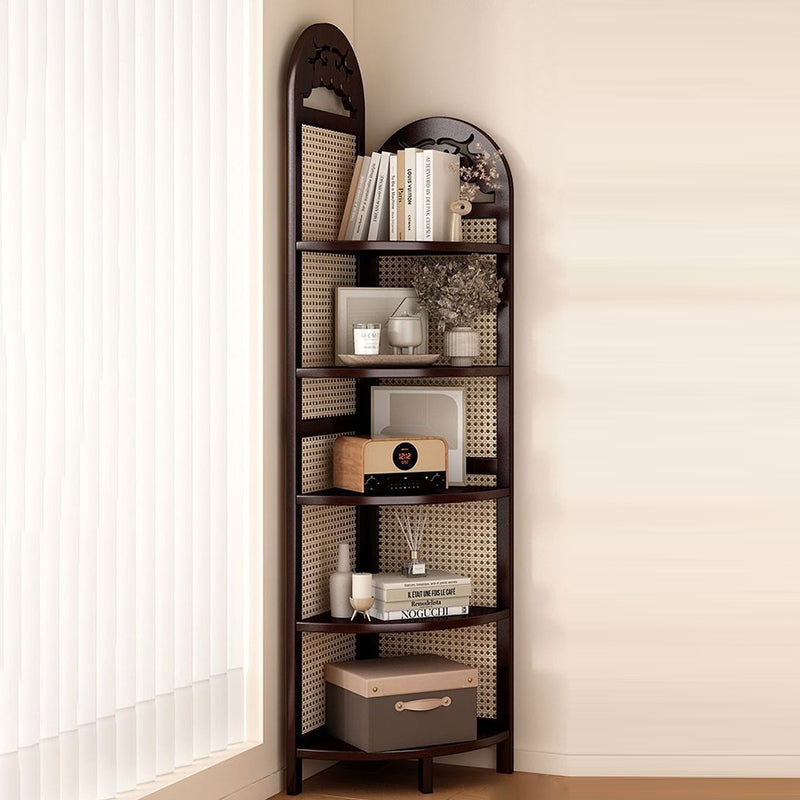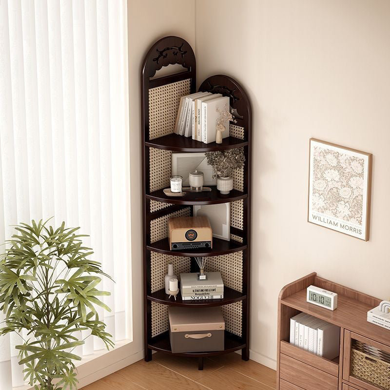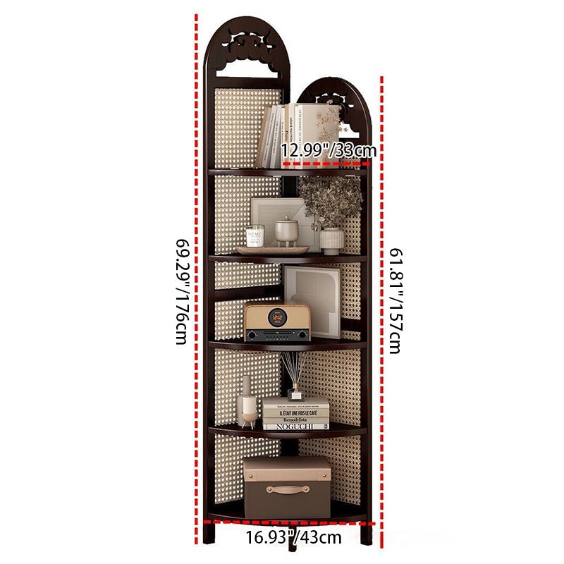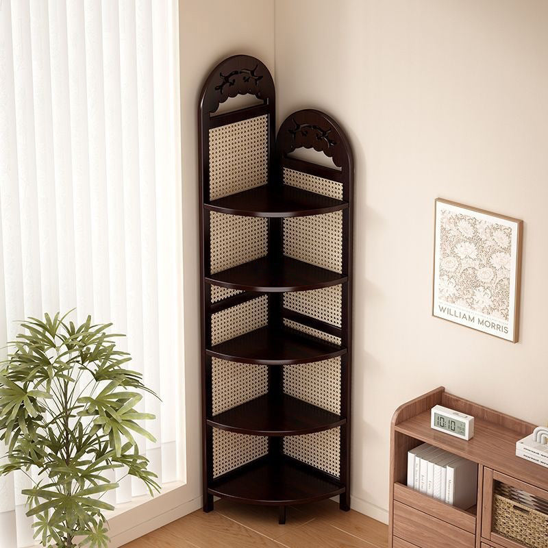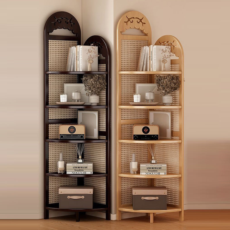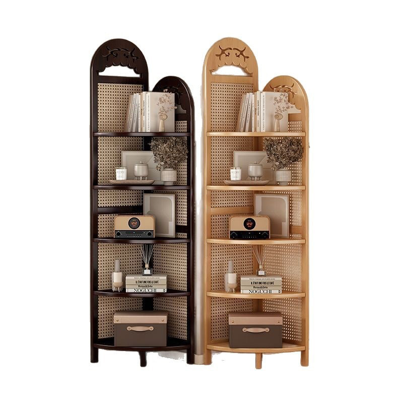 Bring a touch of "Organic Modern" tranquility to your home with our traditional Chinese-style corner shelving unit. A beautiful fusion of heritage craftsmanship and sustainable materials, this tower is meticulously crafted from eco-friendly natural bamboo and features exquisite handwoven rattan accents. The design centers around a stable triangular base, allowing it to nestle perfectly into any 90-degree corner to reclaim valuable floor space. Available in Dark Walnut or Natural Wood finishes, this unit serves as a "Biophilic" statement piece that bridges the gap between Eastern Zen aesthetics and Western minimalist decor in your living room or bedroom.