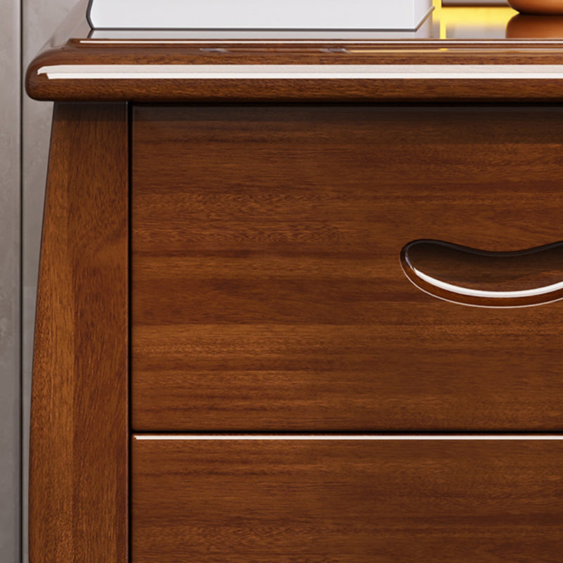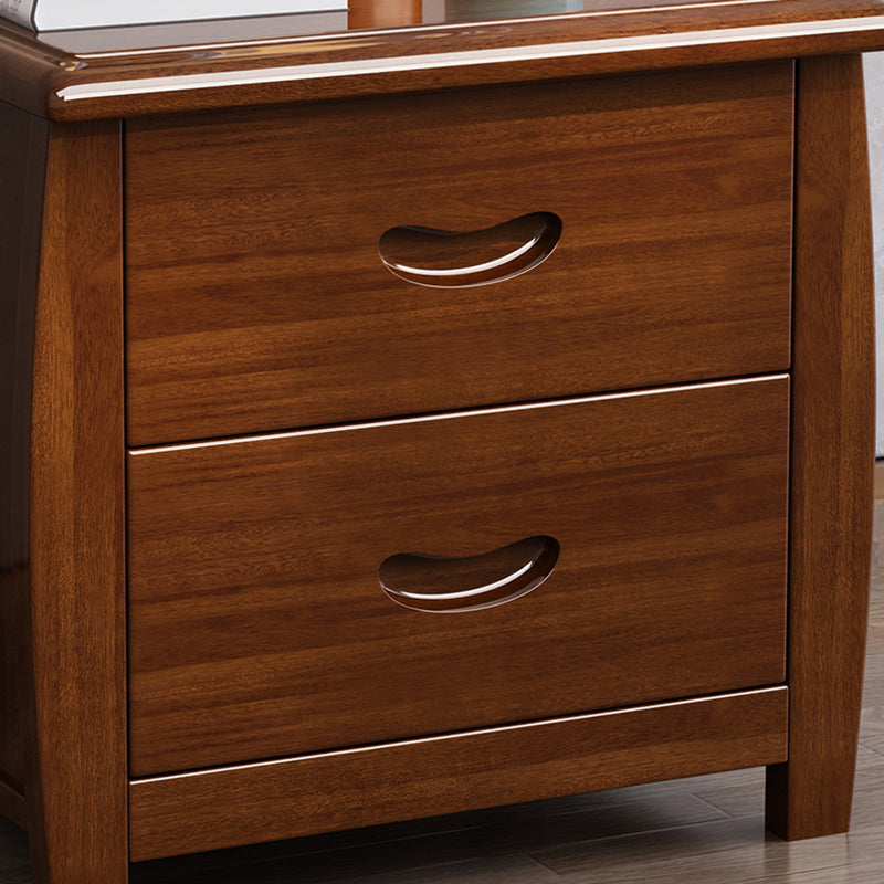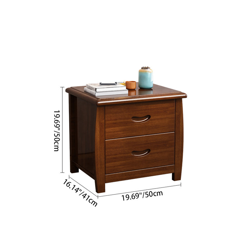 This traditional Chinese-style nightstand masterfully blends classic aesthetics with modern durability. Constructed from premium solid walnut wood and a reinforced MDF structure, it offers exceptional weight support and long-lasting stability. Featuring two spacious drawers for organized bedside storage, the piece is finished in a rich walnut brown tone with rounded safety edges, making it a sophisticated and secure addition to any contemporary bedroom.